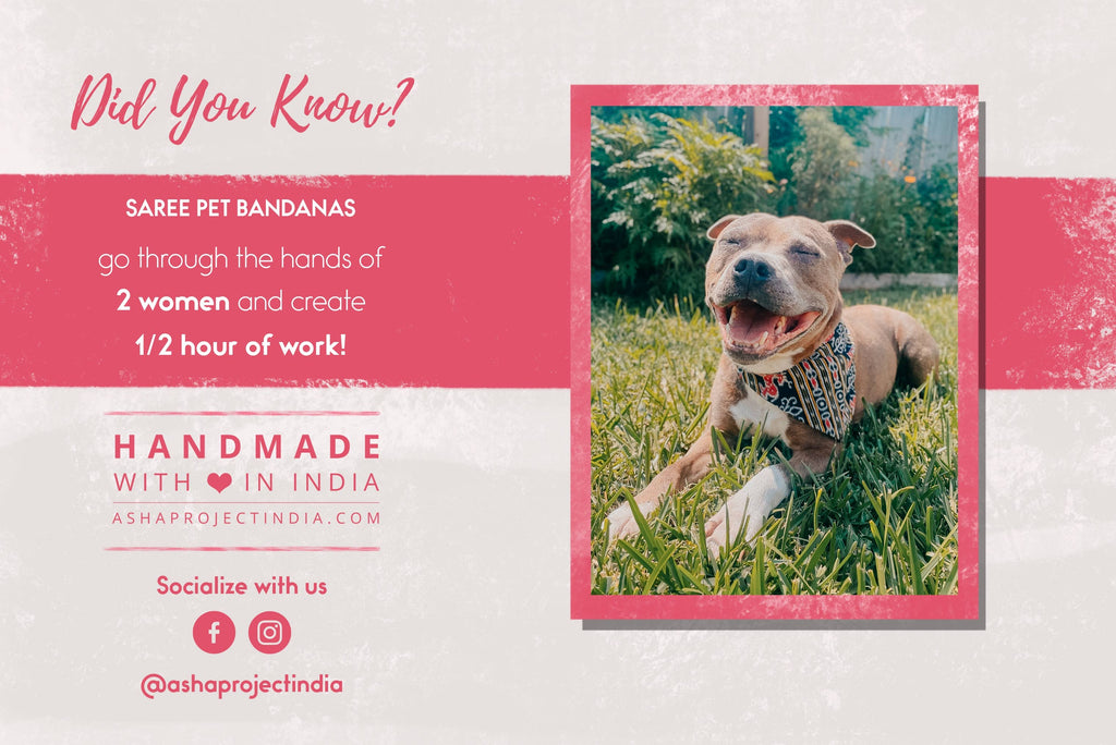 Every Saree Pet Bandana goes through the hands of 2 women and provides approximately 1/2 an hour of work!