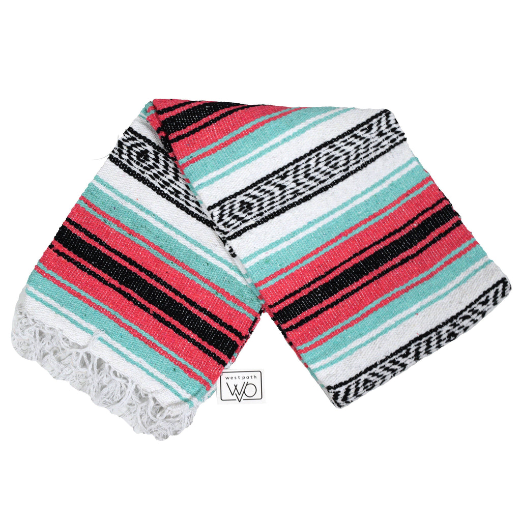 These authentic Mexican falsa blankets are handwoven in Mexico and made with the traditional striped pattern. The loose weave is soft and lightweight, making them ideal for your wanderlust and travels, or as a nice accent piece or home throw to cozy up to.