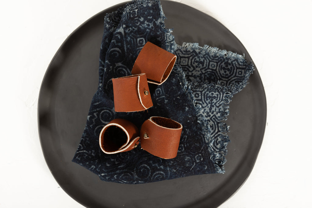 Bring your dinner party to the next level & wrap your linen napkins with a leather napkin ring. Perfect for modern or rustic tablescapes.