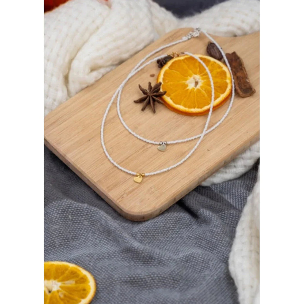 This delicate and beautiful Beaded Heart Choker is handmade with white seed beads and a small heart charm. Not only is it stylish and eye-catching, but it also helps create employment opportunities for women in the Himalayas. Perfect for any occasion, this choker is sure to make a statement.