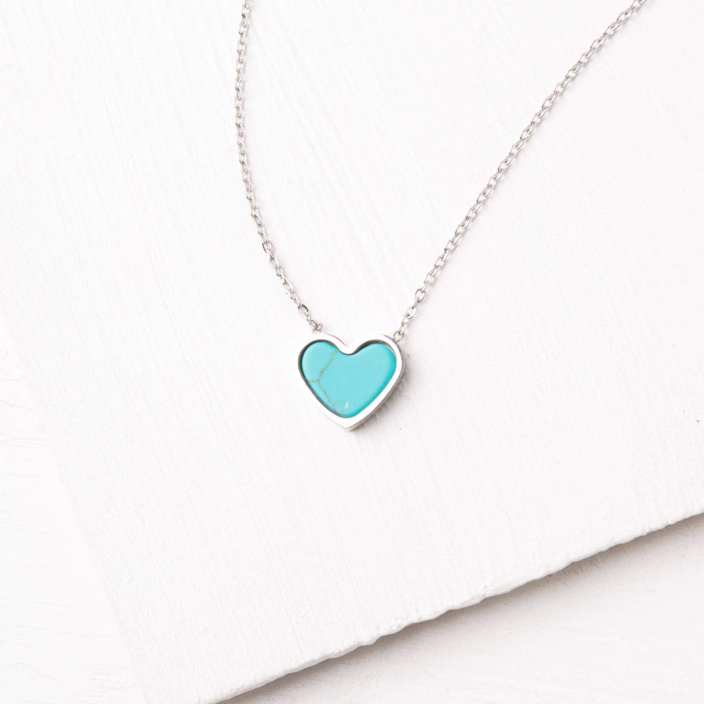 Turquoise howlite and stainless steel heart pendant on a stainless steel chain. Measures 14-16 inches. Hypoallergenic; lead and cadmium free with nickel content less than 100 ppm.You may also like
