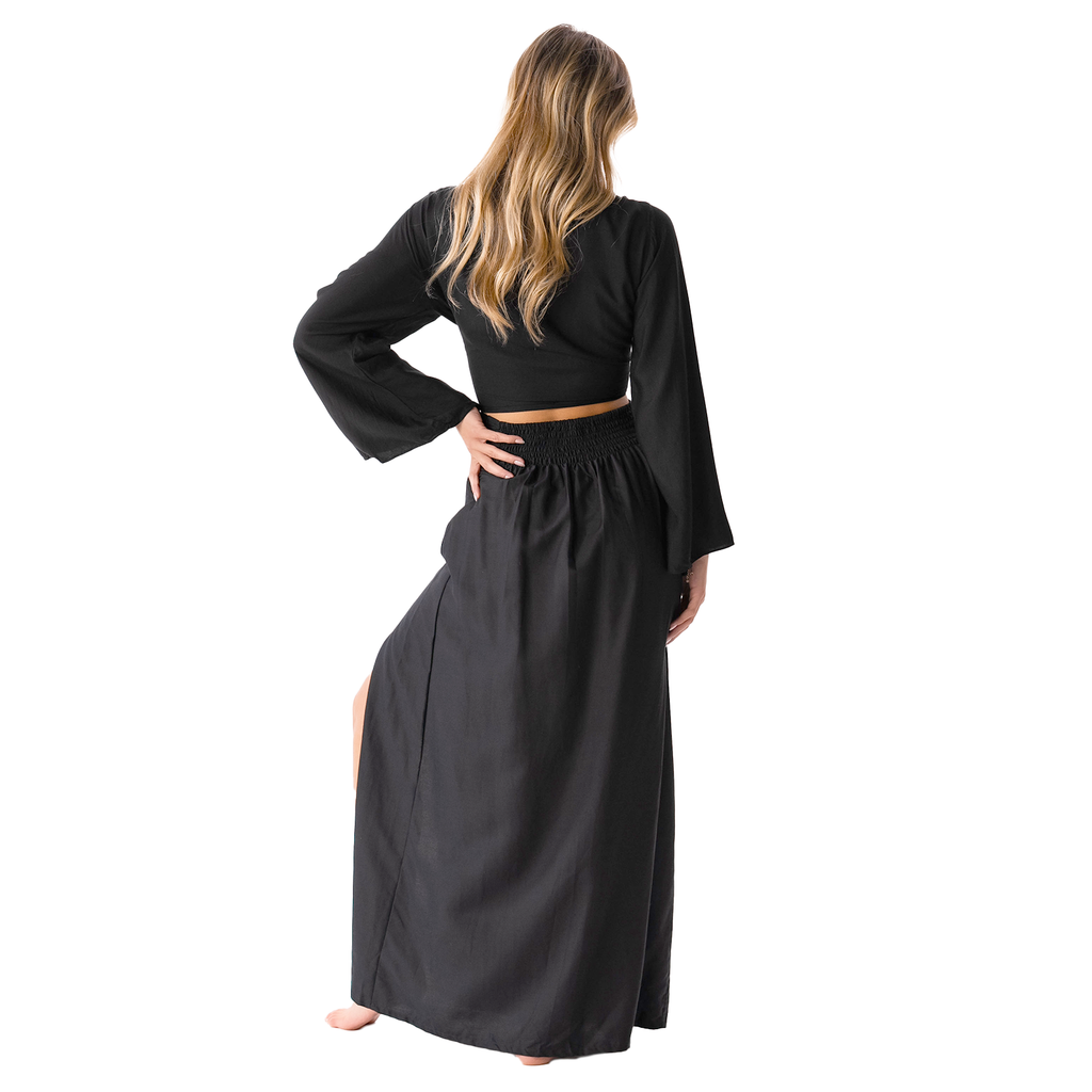 Two is always better than one! Introducing our dreamy set featuring our signature rayon black maxi skirt and matching daydreamer top. Wear them individually or as a full set for ultimate style and comfort!