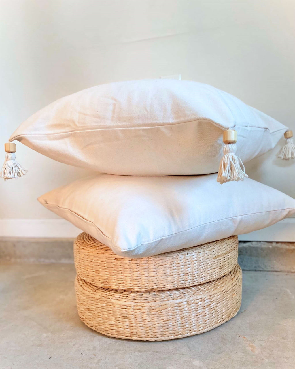 The delicate handmade tassels with wood beads that adorn it add a modern flair to the design. They add the perfect touch of color, texture, and fun to any room.