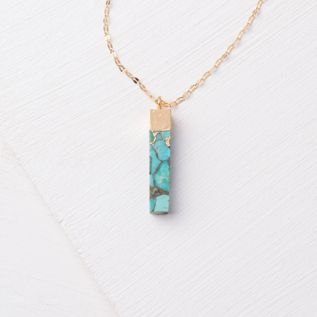 Our Brayden Pendant is a celebration of unique beauty. Each natural turquoise stone is wrapped in a sleek, 14k plated gold setting on an adjustable, gold chain. As with the women of Starfish, each stone is uniquely beautiful! Box size and color may vary. Materials: 14k gold plated stainless steel and natural turquoise pendant on a 14k gold plated stainless steel chain. Size: Adjustable 16 to 18 inches Hypoallergenic; lead and cadmium free with nickel content less than 100 ppm.You may also like