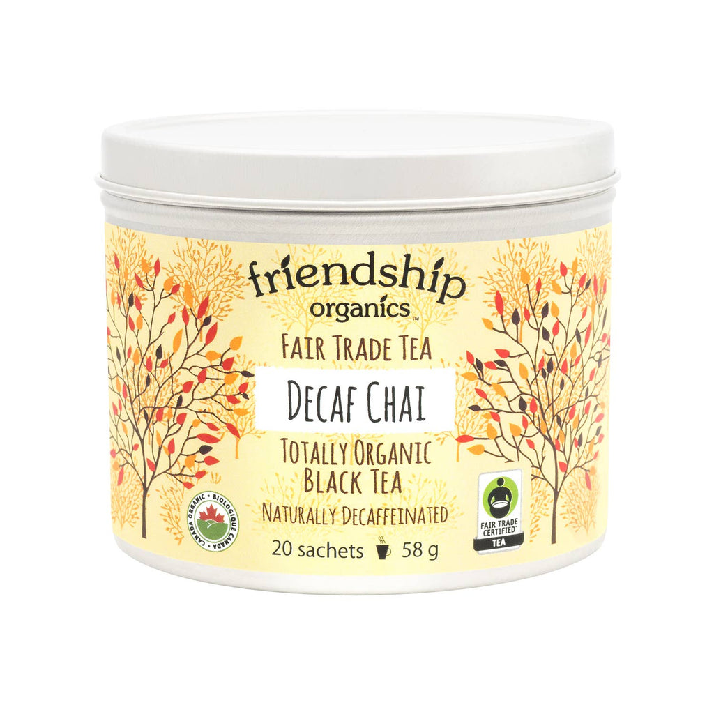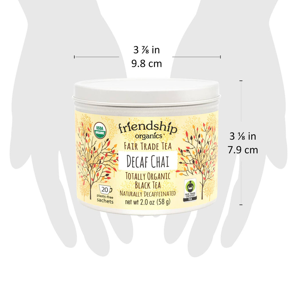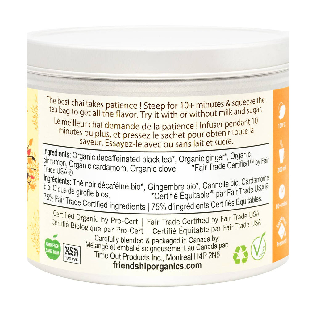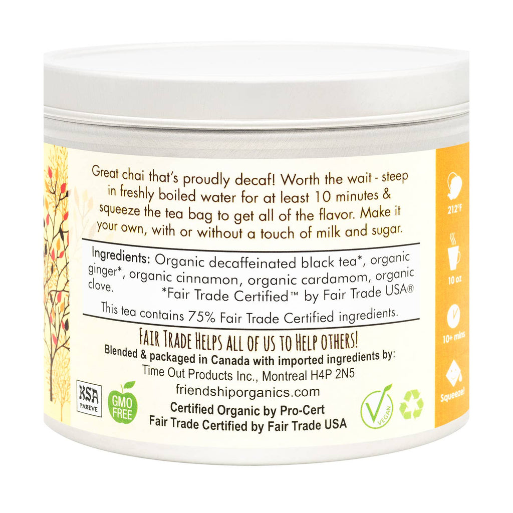 Every Chai is unique: cherished family heirlooms of rich combinations. Savor this deep, spicy blend of decaffeinated black tea, cinnamon, ginger, cardamom and clove from the mountains of India! May be enjoyed hot, or as an invigorating iced tea! Packed in a plastic-free cellophane bag, our tea sachets are made from natural abacá fiber and are themselves plastic-free. Our Tin can be reused countless times and is totally recyclable. Organic Certified, Fair Trade Certified and Kosher Certified. All ingredients are non-GMO certified, cultivated without the use of pesticides, and naturally Gluten-free.You may also like