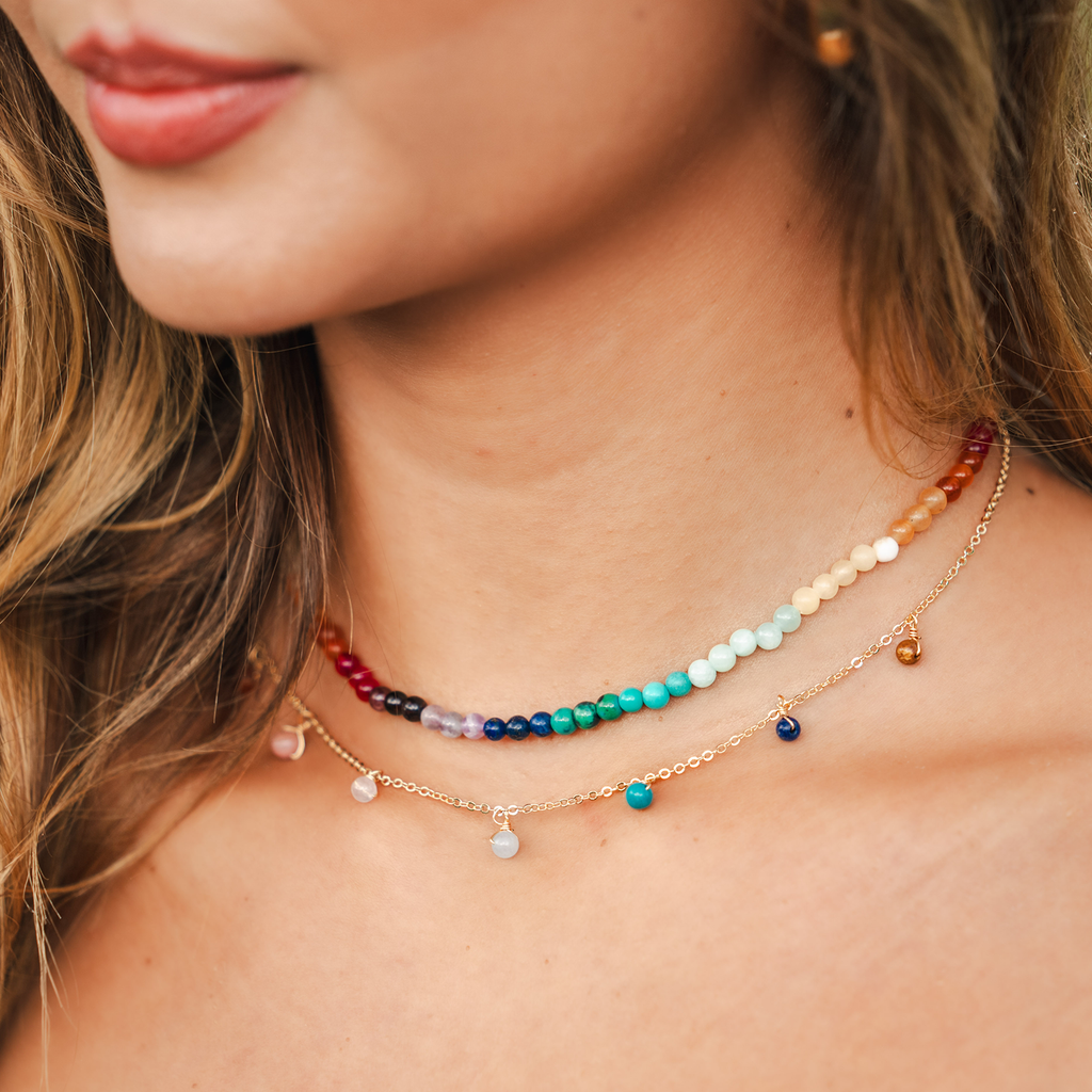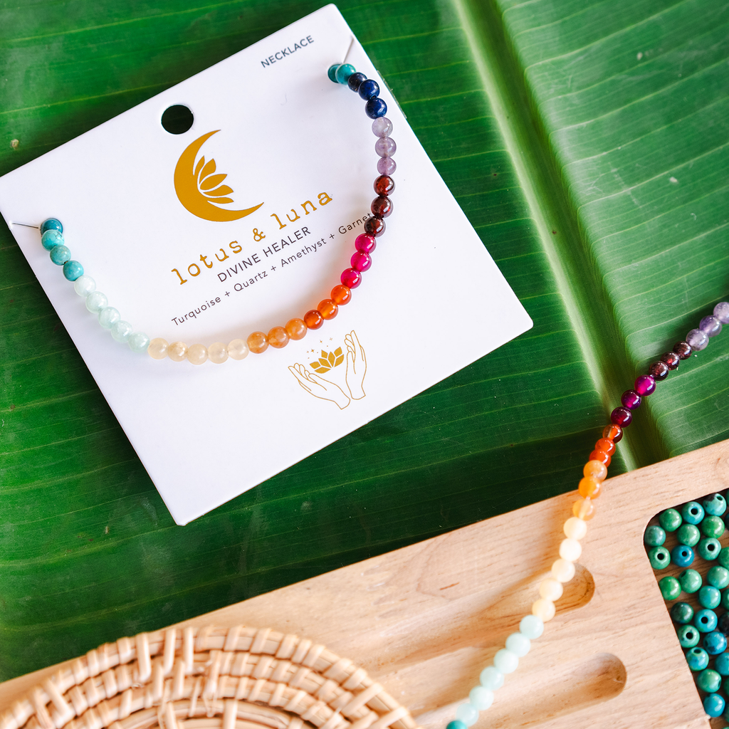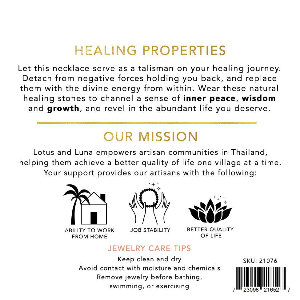Perfect for gifting, each jewelry piece comes packaged with a description of its stones and their healing properties.