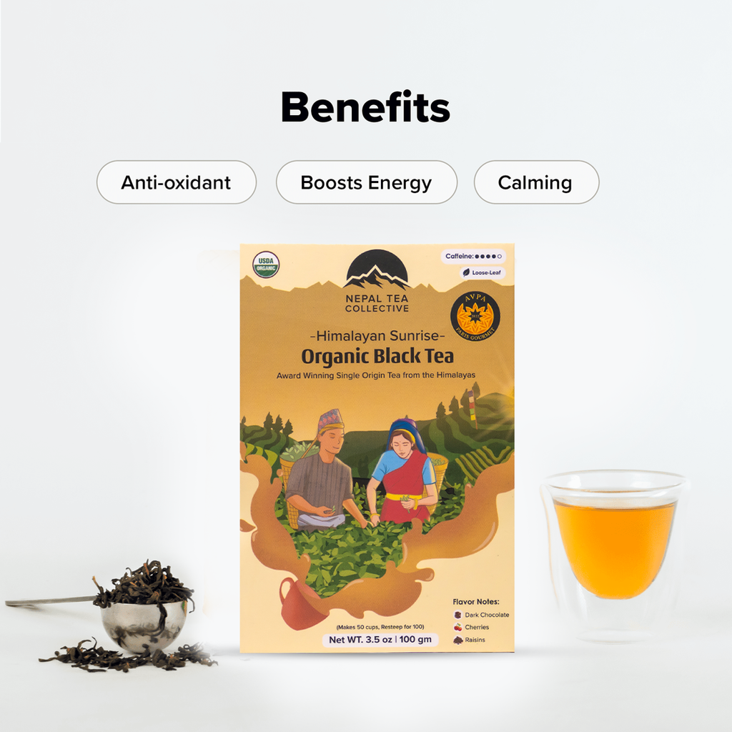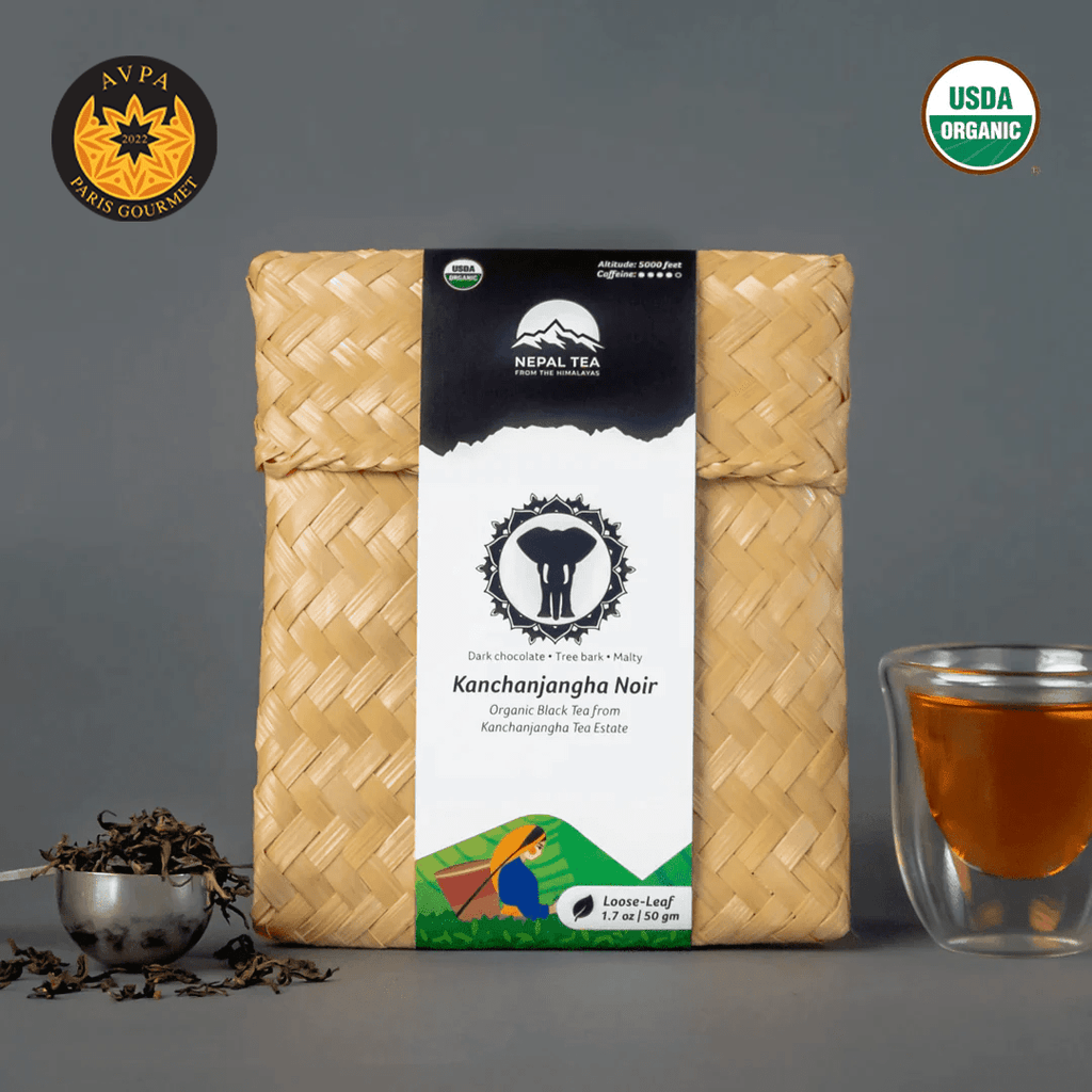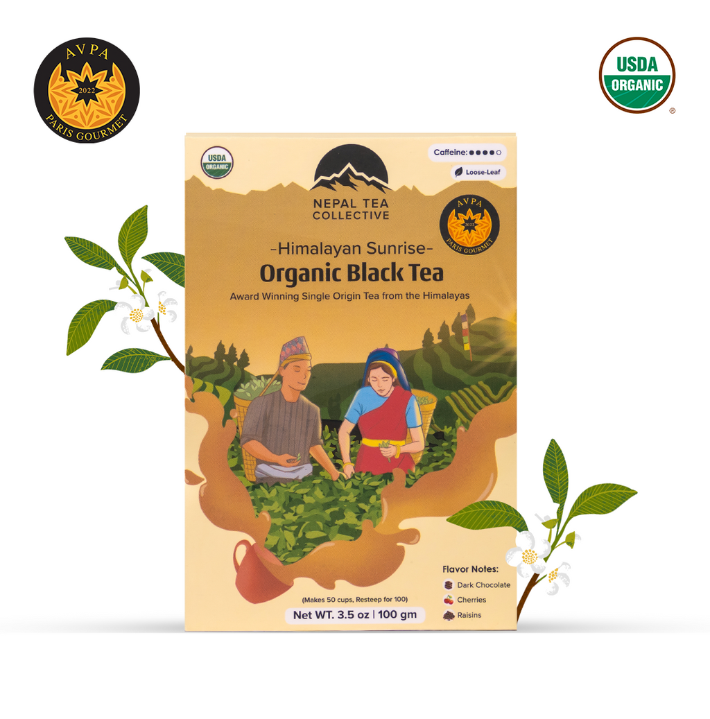 Himalayan Sunrise; formerly known as Kanchanjangha Noir, is a brisk black tea that captivates with its fruity and floral aromas, rich caramel hints, and distinct notes of raisins, cherry, and dark chocolate.