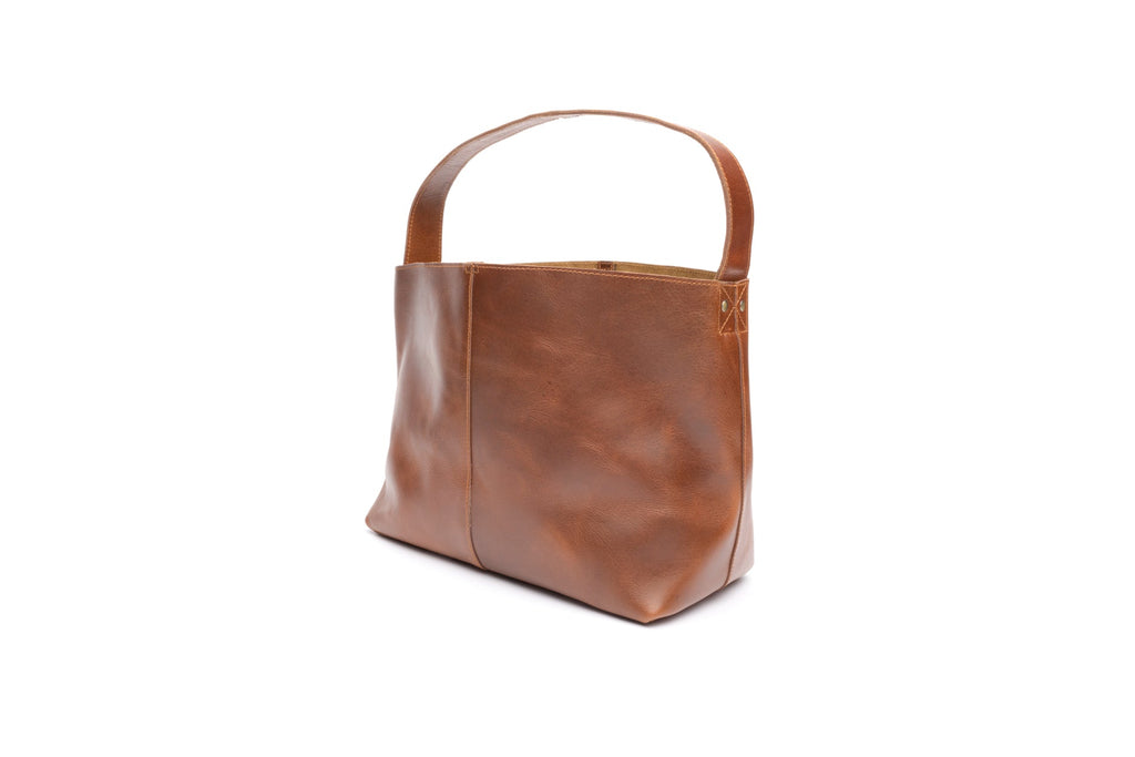 Meet Kate! Named for our sweet friend that's always ready to host a party, lend an ear, and laugh at your bad jokes, this purse can do it all! This original large leather tote is made from a soft, supple leather in a great caramel brown tone. She's the perfect mix of large enough to hold all your things, and light enough to not weigh you down. Kate's timeless style will ensure she remains a staple in your wardrobe for years to come.
