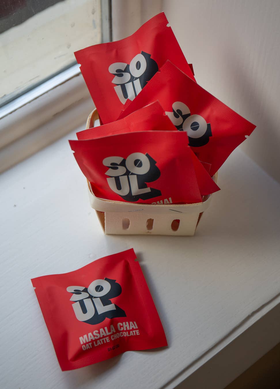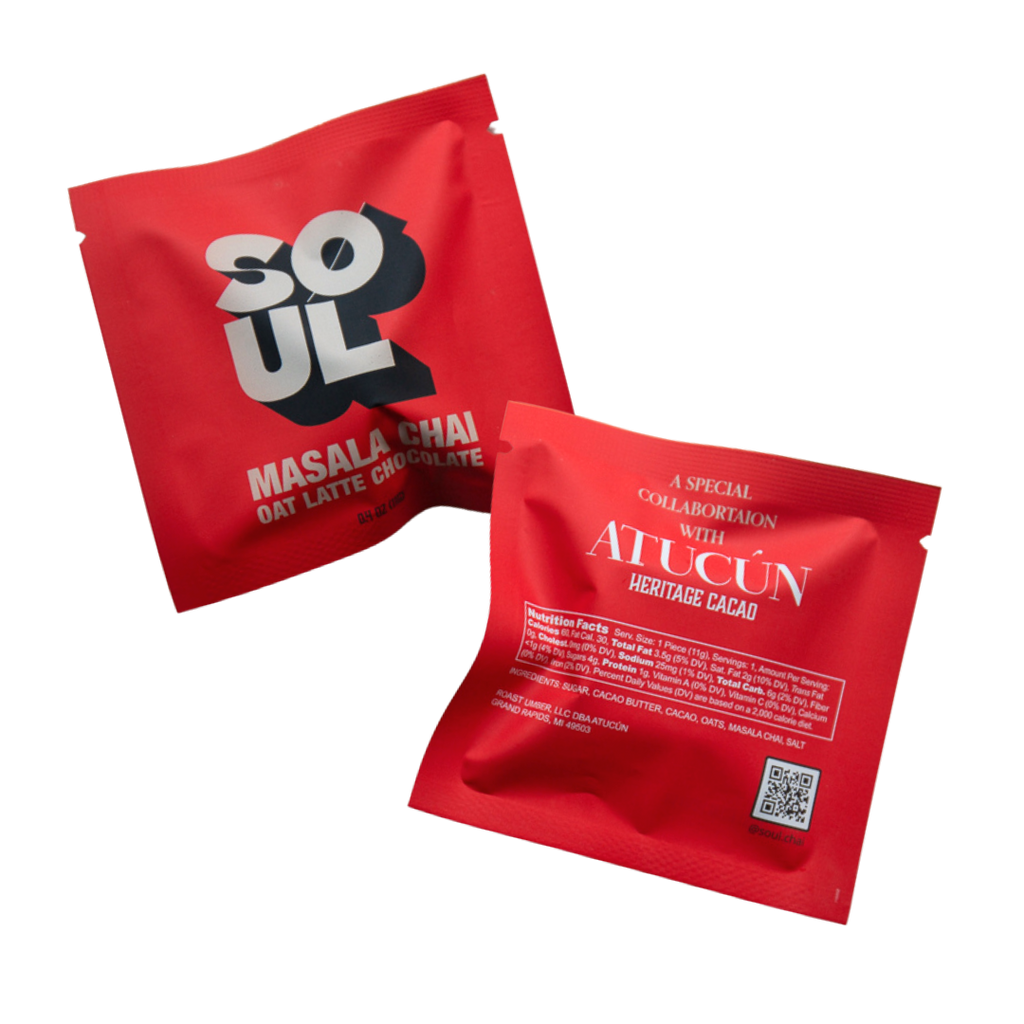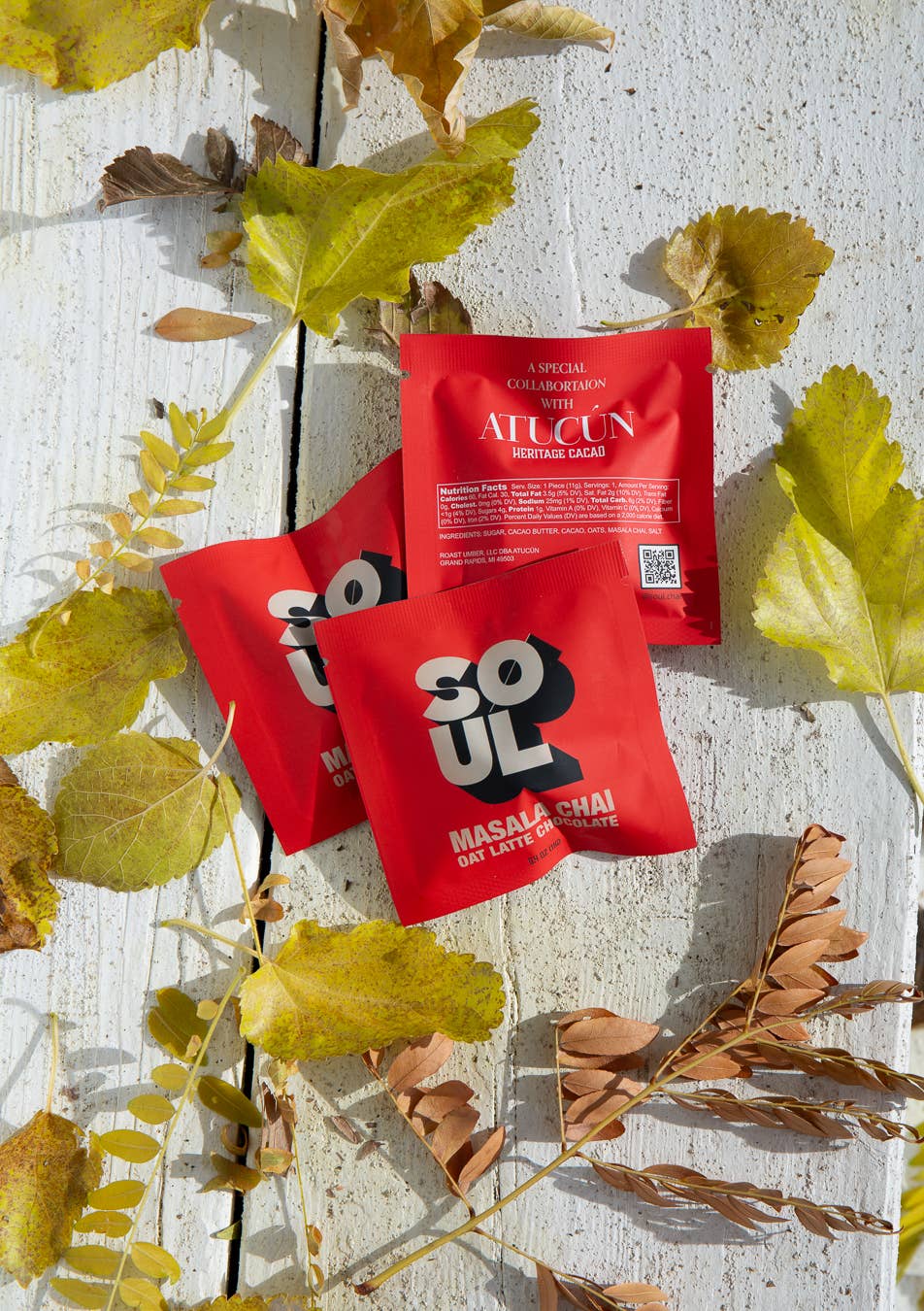 We’ve teamed up with heritage cacao makers, Atucun, to bring you and your customers the Tree-to-Bar chocolate of your dreams! These limited edition mordiscos (nibbles) are made with spicy-sweet Original Masala Soul Chai, creamy oat milk and rich cacao direct from Honduras. As always, no fillers- just chai, oats + cacao! Each chocolate is the perfect, 11g generous serving. Vegan + Gluten-free