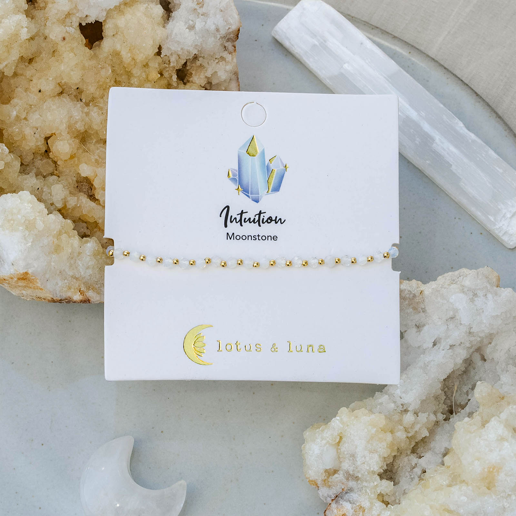 Associated with the inner goddess and attuned to the ebb and flow of the Moon’s energy, Moonstone enhances feminine intuition, decreases stress, and stabilizes emotions. It has also been known to increase psychic ability and serve as an amulet of protection to travelers.