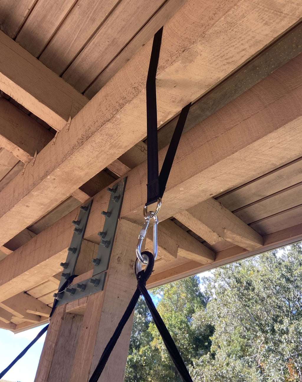 This outdoor hammock chair swing hanging strap is perfect for installation on a porch, pergola, deck, or sturdy tree branch. It is meant to wrap around a strong solid structure that can support the weight.