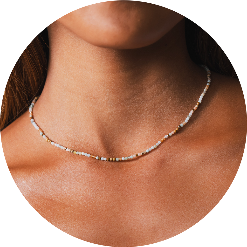 Jasper and Amazonite are known to stabilize the aura bringing emotional peace while strengthening self-discipline. Agate promotes growth in all aspects of life, but especially in personal relationships. Together, these powerful stones manifest a neutralizing, calming effect in the presence of turbulance, and make peace betweend opposing forces.