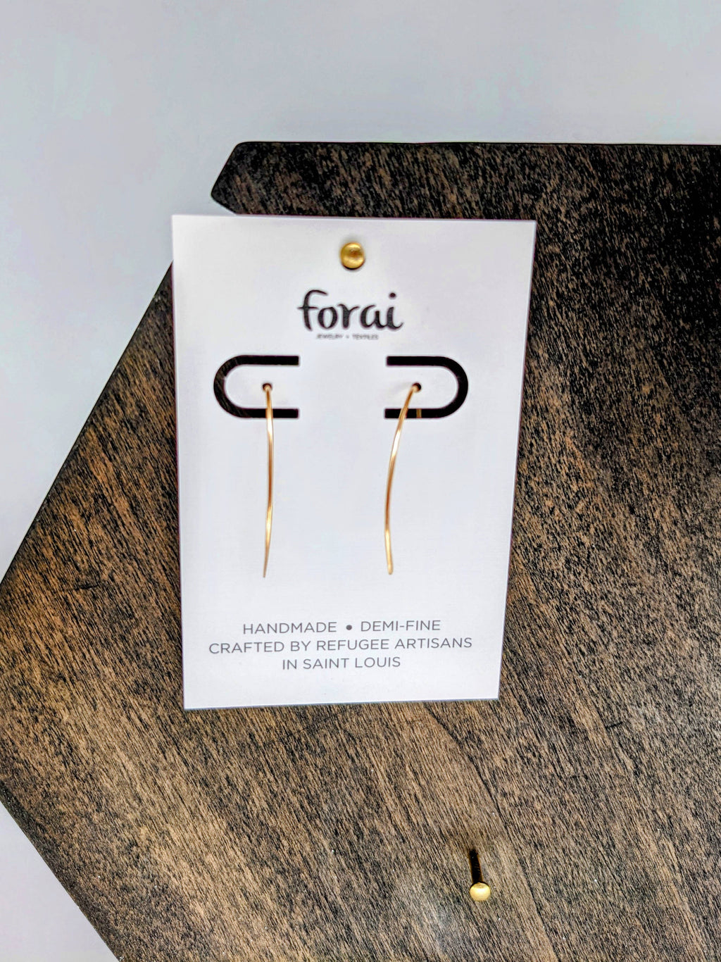 A dainty mini-version! Named for the Qasioun Mountain overlooking Damascus, the Qasioun Minimalist Mini-Threader Earrings in Hammered 14k gold fill offer effortless styling with a lightweight feel. This mountain is special to our Syrian artisans who escaped when war broke out in their beloved city. SUSTAINABILITY AND VALUES: Women-founded and run brand. Designed by an all-female team in St. Louis, MO. Raw brass sustainably-sourced in Albuquerque, NM. Hand-crafted by fairly paid, resettled refugee and immigrant women in St. Louis, MO. CARE AND QUALITY: 20g 14k gold fill. Drop 2". Store with jewelry of the same tone (silver with silver, gold with gold). Gently polish with a jewelry polishing cloth as needed.