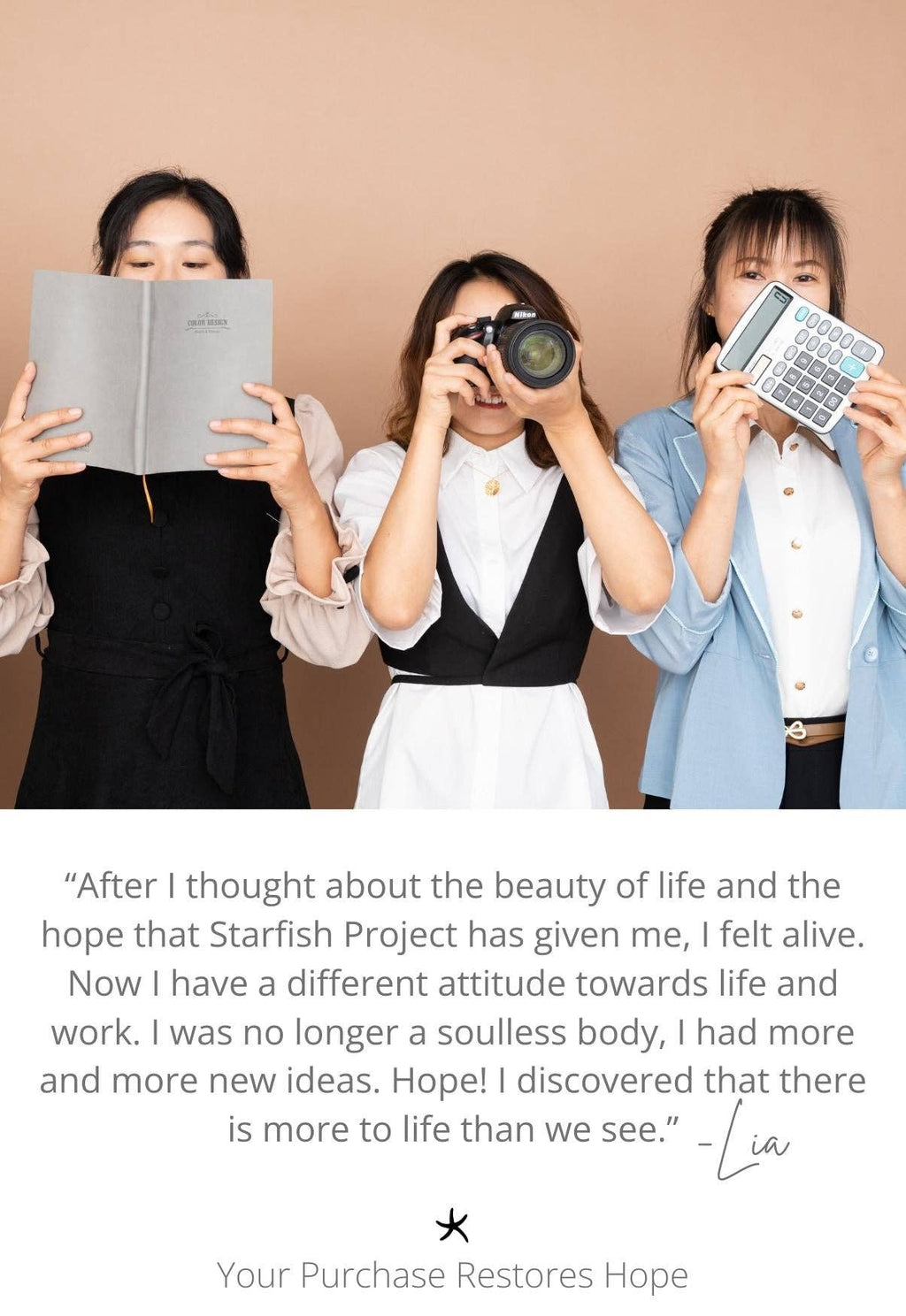 Starfish Project restores hope to exploited women in Asia. We provide life-changing opportunities through our Holistic Care Programs and our social enterprise where women create beautiful jewelry and become managers, accountants, graphic designers, and photographers. Through our Holistic Care Programs, we provide vocational training, healthcare, shelter, counseling, and education grants for our women and their children. Starfish Project has employed over 130 women and has served thousands through our Community Outreach Services. *Certified Fair Trade through the Fair Trade Federation