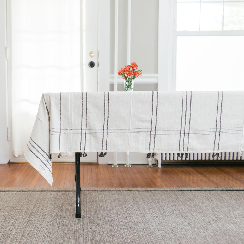 Add a luxurious touch to your tablescape with our Ribbons Cotton Tablecloth! Beautifully versatile for indoor or outdoor use. Exquisitely handwoven by a small group of talented Ethiopian artisans using handspun cotton and dyed with AZO-free color. The tablecloth also could be used as a lightweight throw or wrap. 100% locally sourced eco-friendly cotton. Yes, it's machine washable!