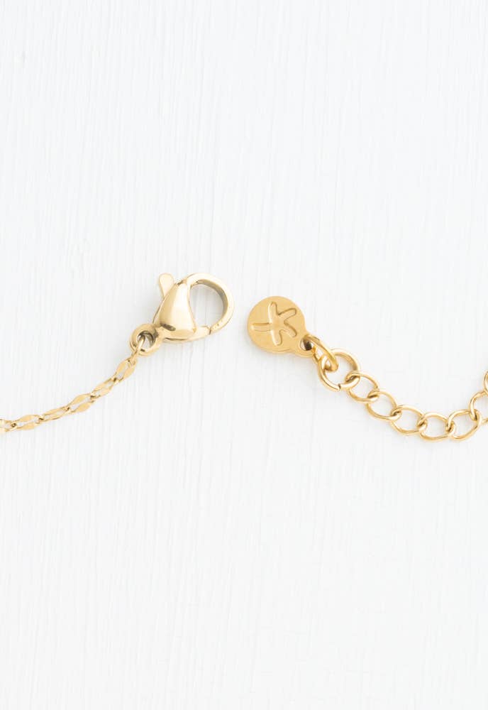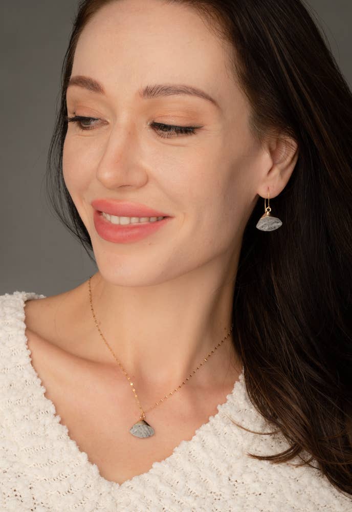Our gorgeous Fan Drop Necklace features a effortlessly cool charcoal texture-cut stone dipped in gold suspended from an adjustable 14K gold plated chain. This timeless piece pairs beautifully with a t-shirt and jeans as well as a little black dress! Whether chosen as a gift or to treat yourself we know the Fan Drop Necklace is sure to become a favorite. When you purchase the Fan Drop Necklace you help survivors of human trafficking experience freedom, establish independence and develop careers. Thank you! Box size and color may vary. Materials: 14k gold plated stainless steel chain with a stone pendant Hypoallergenic; lead and cadmium free with nickel content less than 100 ppm. Size: 16-18 inchesYou may also like