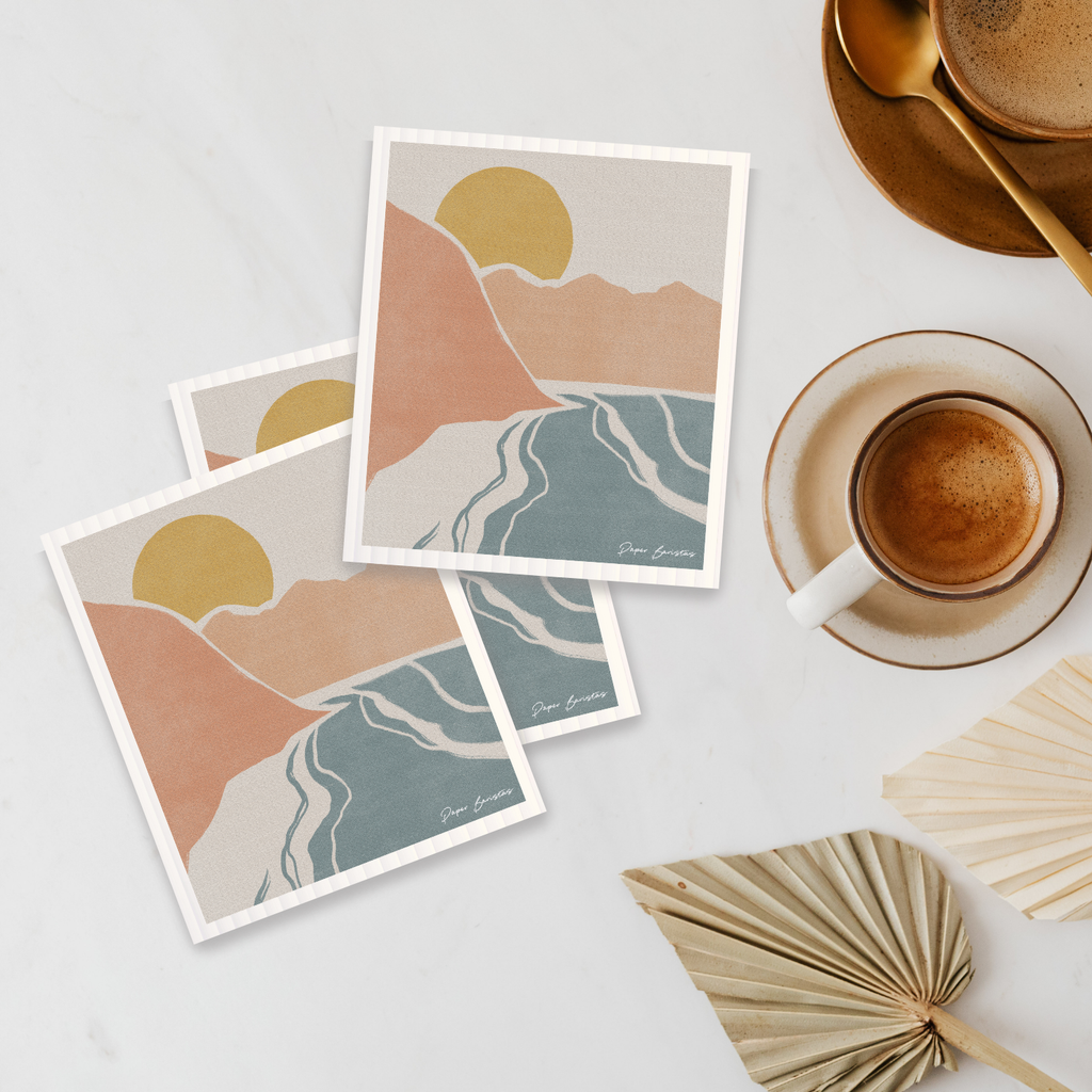 Set of 3 Swedish Dishcloth: Landscape Line Beach