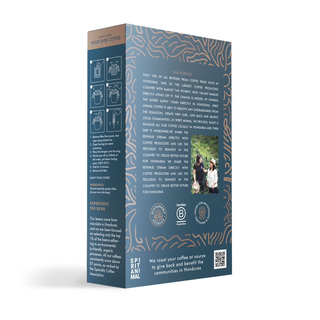 Whether you're traveling, camping, or want to enjoy your favorite coffee at work, our pour-over drip bags make it easy to have premium coffee whenever and wherever. Just add hot water and unleash your spirit animal.