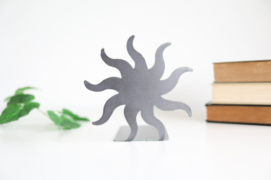 Your item is plasma cut using 16 gauge steel, approximately the thickness of a quarter coin, for a durable yet lightweight piece. The metal is left untreated to maintain its natural finish so it is best kept dry. Because of this, each item may vary slightly in coloration and markings, having it's own unique characteristics.