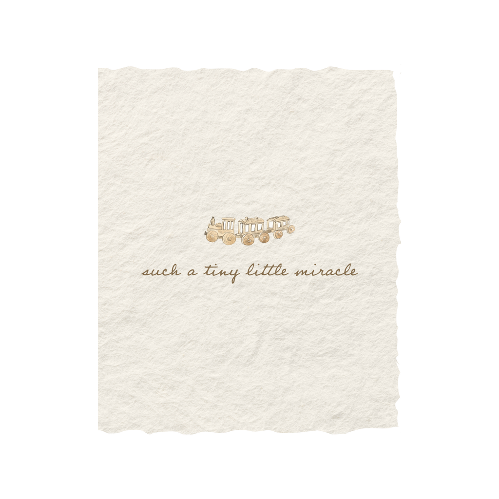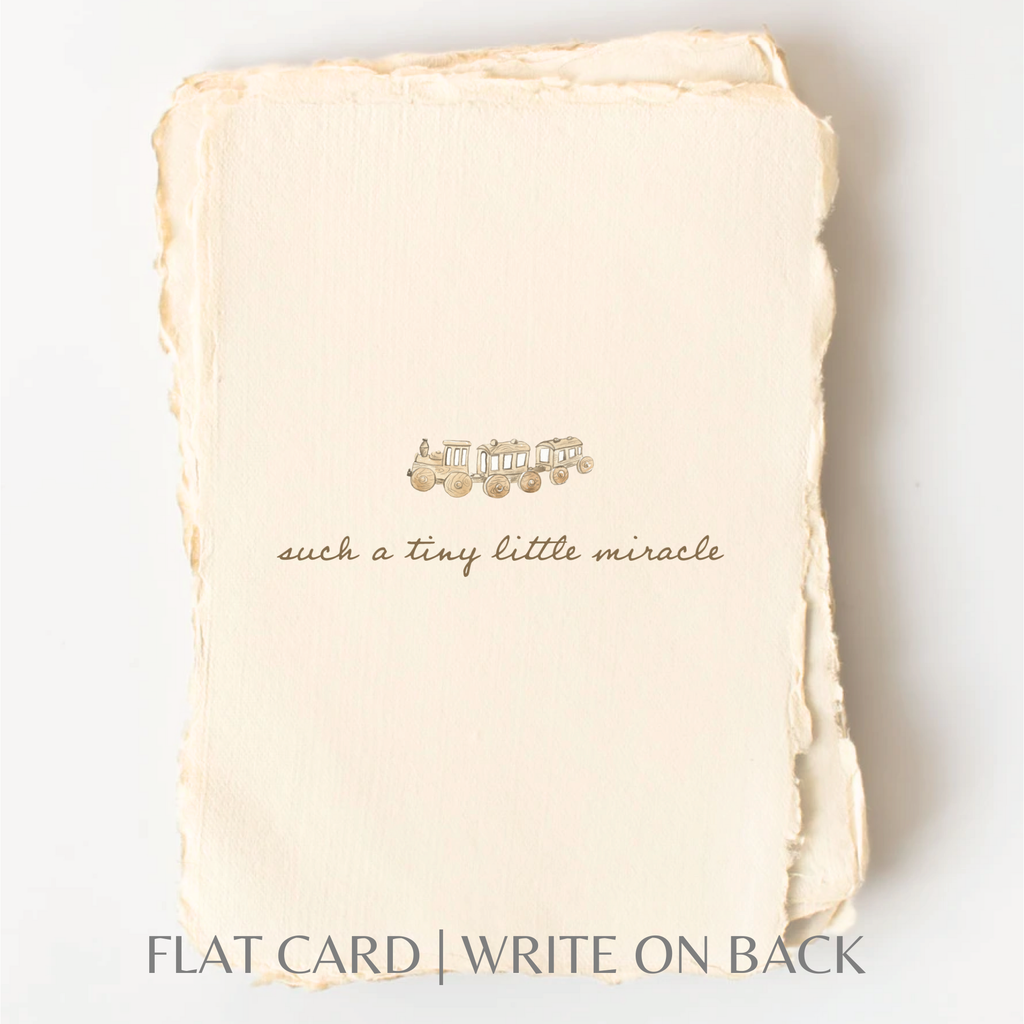 Eco-Friendly. Fair Trade. Gives Back. Paper Goods Brewed To Do Good. 10% Fighting Human Trafficking. Our handmade deckled edge paper collection is letterpress printed in-house late at night with lots of coffee. This card is meant to be treasured for years to come. Handmade paper beautiful enough to frame and helps us ensure there was no slave labor in our supply chain. 10% goes to fight for human rights in the supply chain. Saying: "Such a Tiny Little Miracle" FOLDED CARD 8.5"W x 5.5"L FLAT CARD 4.25"W x 5.5"L Color: Wheat Letterpress + Digitally Printed Gold Ink Gold Flat Flap Envelope to match ink. Sleeved with Recycled Material and labeled. A2 FLAT or FOLDED CARD, Blank back to write on. Ethically made by Artisans, Hand printed in our USA studioYou may also like