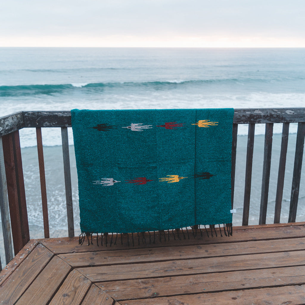 Our traditional style Mexican Thunderbird Blankets are soft and heavyweight, making them a perfect choice as cozy home throws for your bed or sofa, or for you to snuggle up with during cloudy days. They're also great to use in yoga practice as bolsters or meditation cushions.
