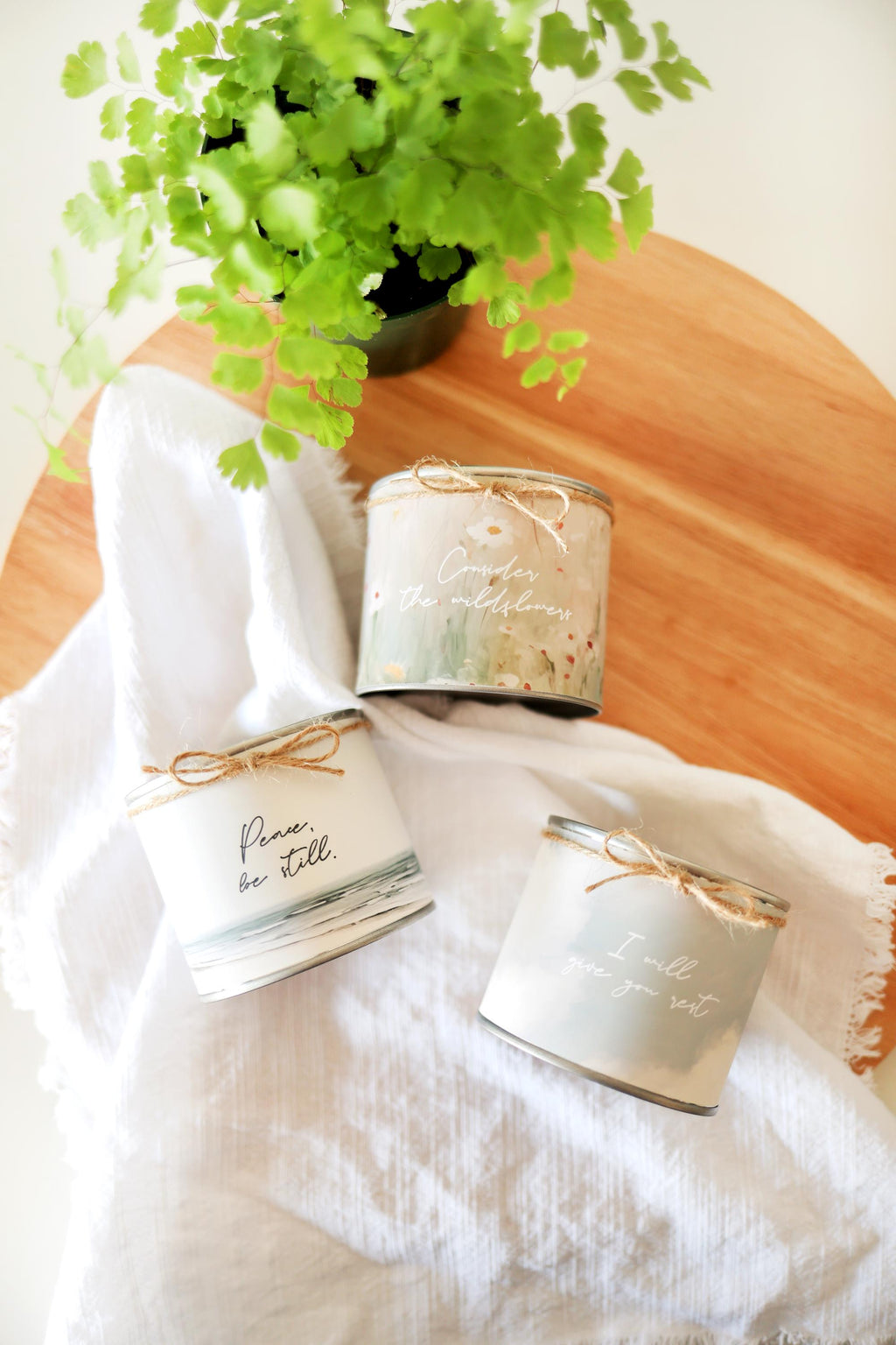 This candle was inspired by the bible verse Luke 12:27-28, encouraging us to trust God and let go of our worries.