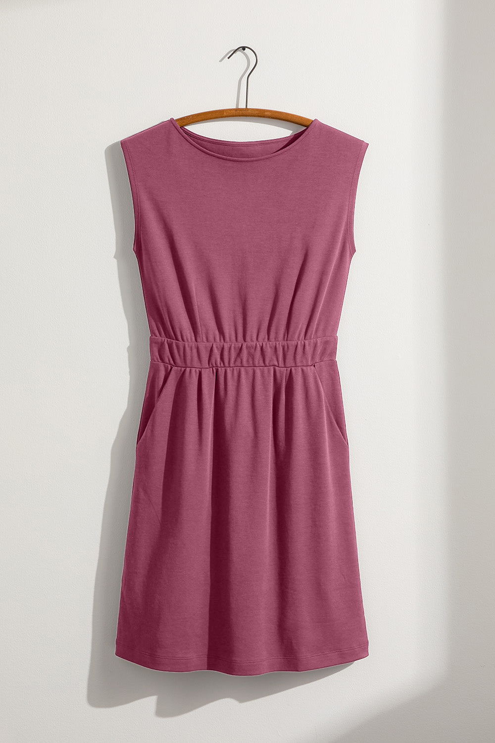 This cap sleeve dress with pockets is made from luxuriously soft organic Pima cotton in a durable interlock knit. Designed with a flattering ballet neckline, comfortable elastic waist, and functional pockets. Whether you're heading to work, traveling, or going out to dinner, this dress is your go-to for effortless style and long-lasting comfort.