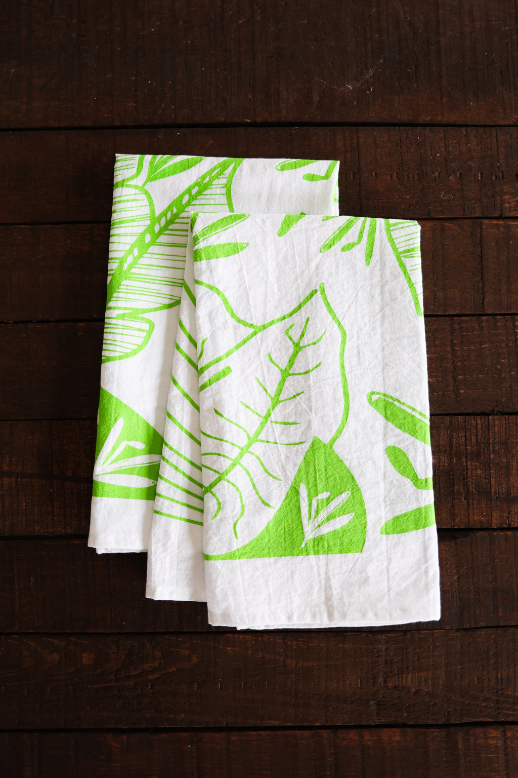 These are the perfect size to fold and display in a table setting or hanging over your oven. They are medium weight and lint-free so it works as a delicate napkin or as an absorbent clean-up cloth. (YES, they are *absorbent!*)