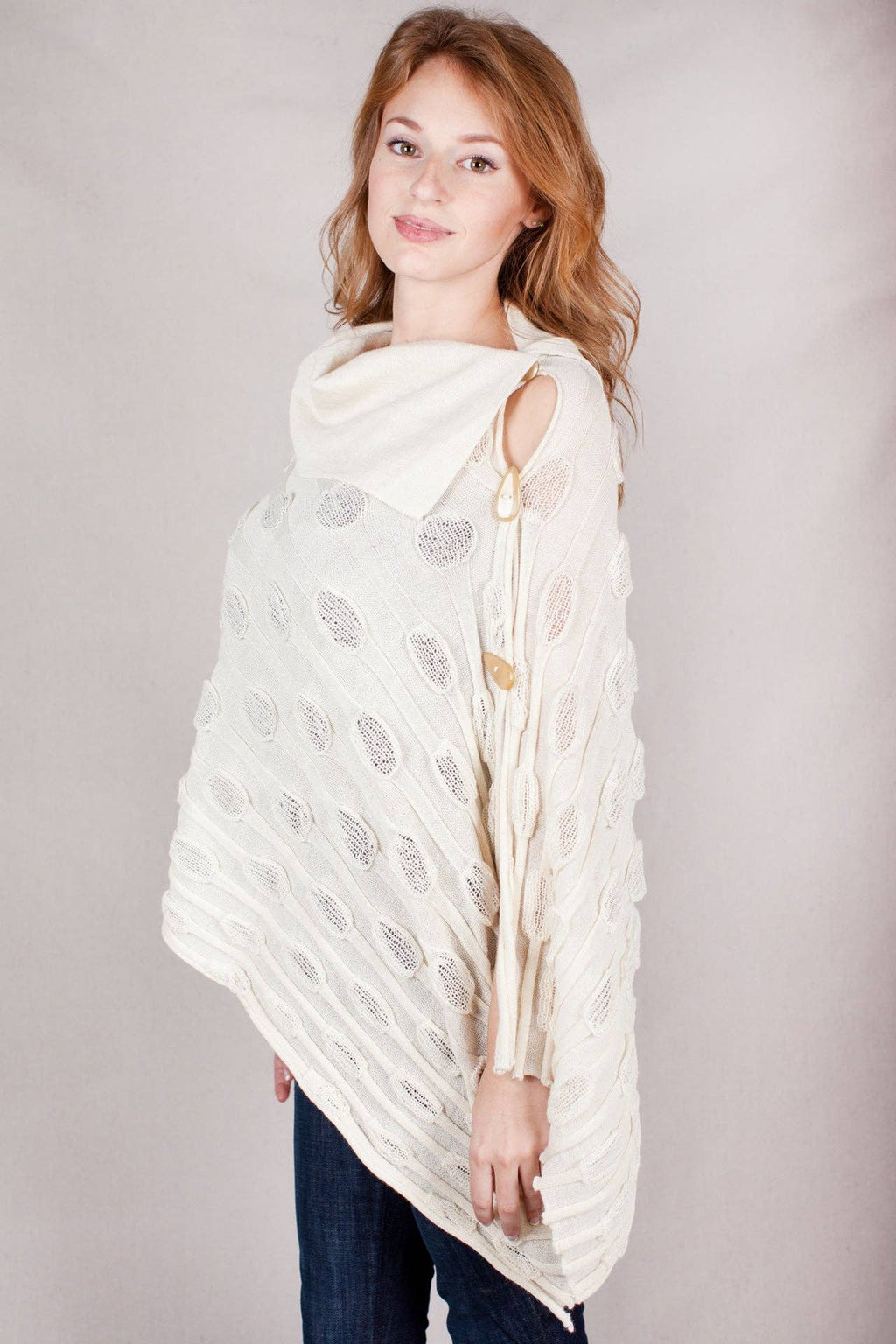 The alpaca globo shawl is the perfect mix of classic and contemporary. The bubble details, add interest and a layer of delicacy while giving this piece a unique pattern. Perfect for layering! This piece will dress up your outfit or can be worn casually with blue jeans for every day!