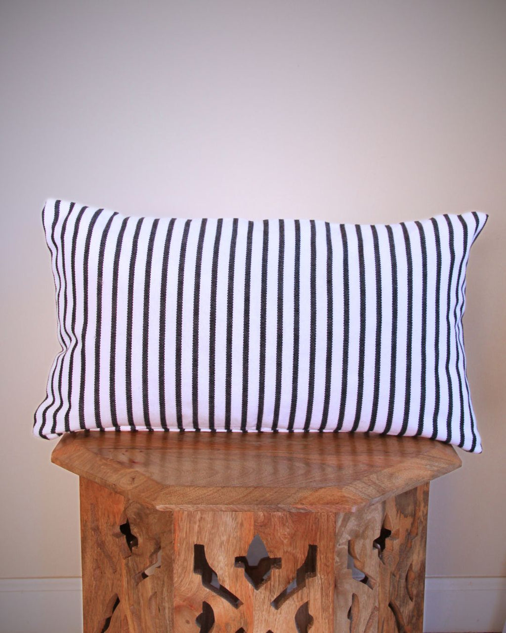 Handcrafted by skilled artisans in El Salvador, this black and white stripe pillow cover is made from premium 100% woven cotton canvas, providing a cozy and soft addition to any home decor. It features a zipper for easy washing and maintenance.