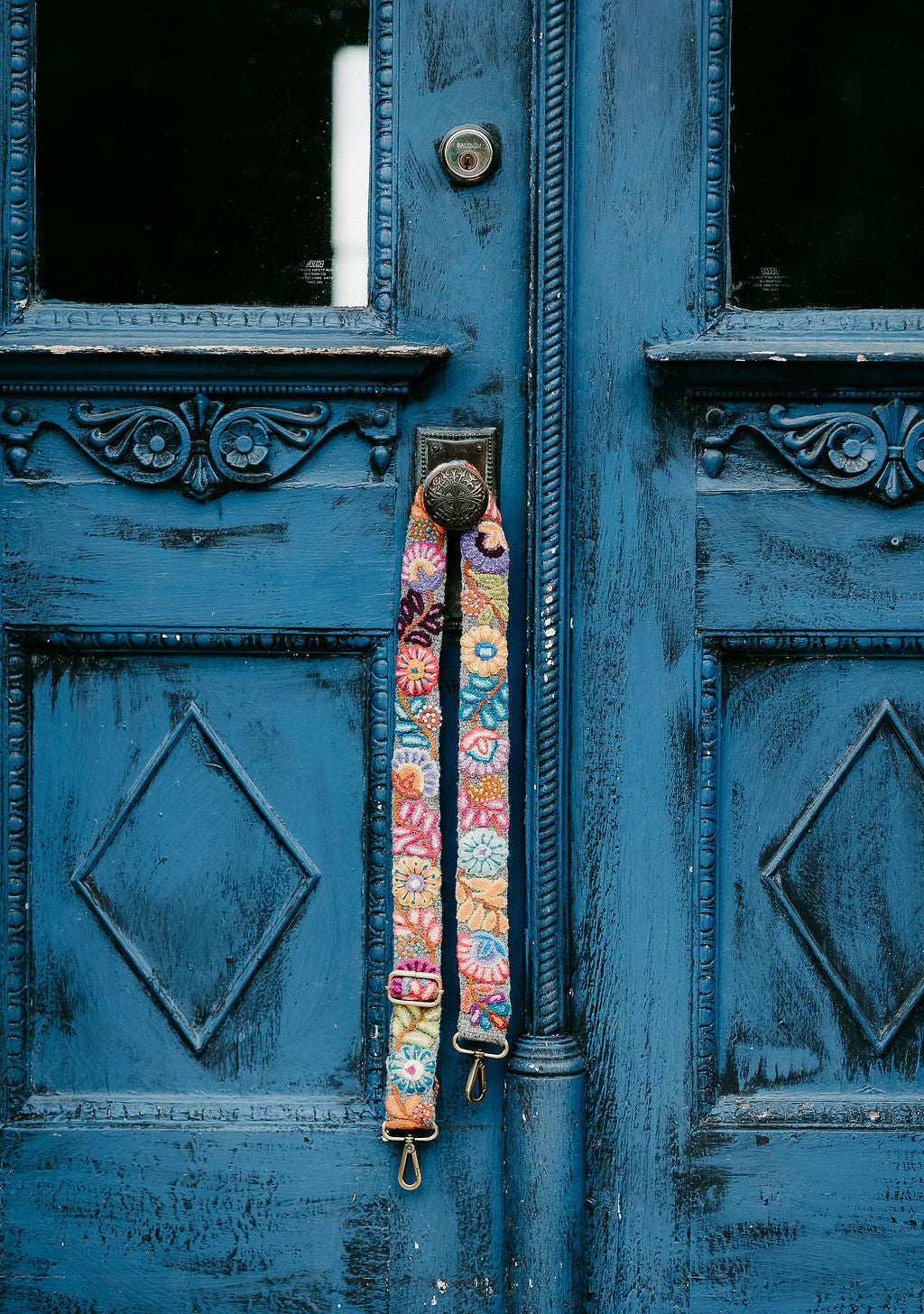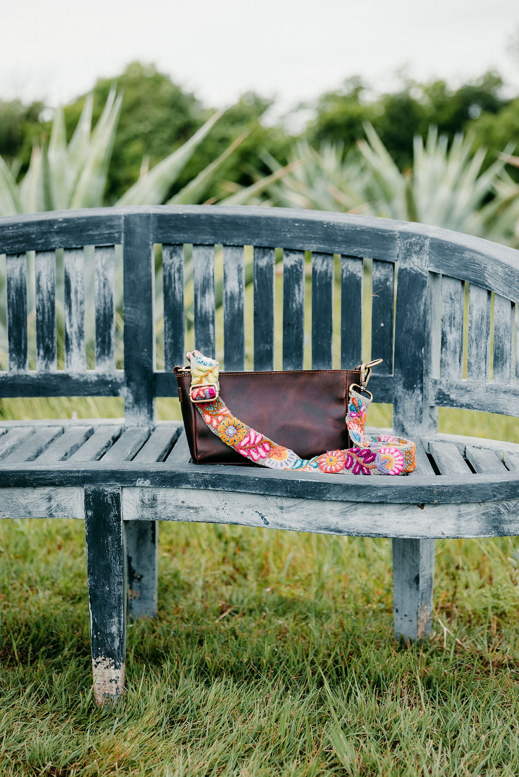 Grey wool fabric with hand embroidered multi color floral and leaves design. Each strap is different based on the color threads the artisan receives! A very fun addition to any purse. Hand embroidered in the Andes mountains of Peru by Fair Trade artisans.