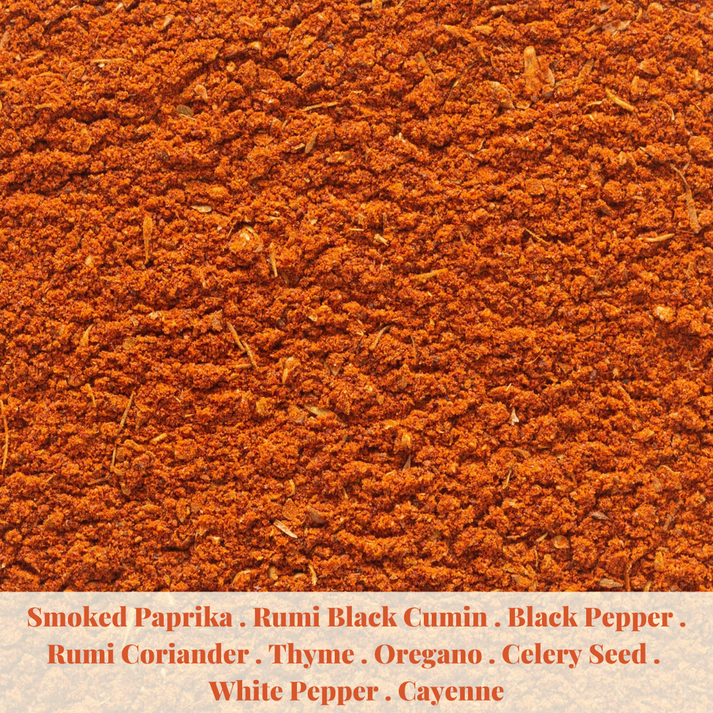 Use Rumi Spice's hot & smoky salt-free Cajun blend as a spicy rub on meats, or turn up the heat on roasted vegetables. To use on meat or fish, brush with canola oil and liberally coat with Cajun blend. Turn into a quick dip by stirring into fat free Greek yogurt. No additives.