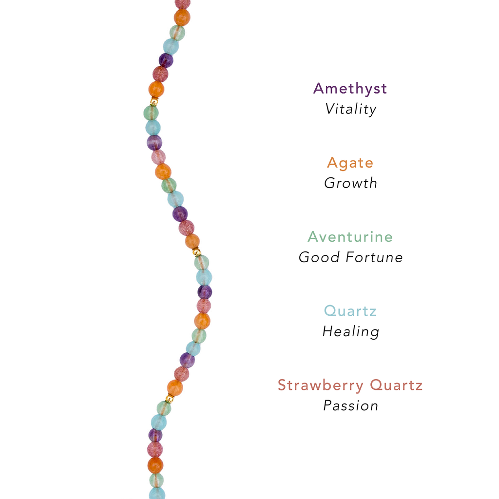 Embrace the cosmic alighnment provided by star-born energy stones. The sacred frequencies of Amethyst, Quartz, and Agate awaken vitality, healing, and growth. Woven together, these stones act as a beacon of divine abundance, beleived to elevate the spirit, unlock potential, and manifest all the gifts that the universe has in store.