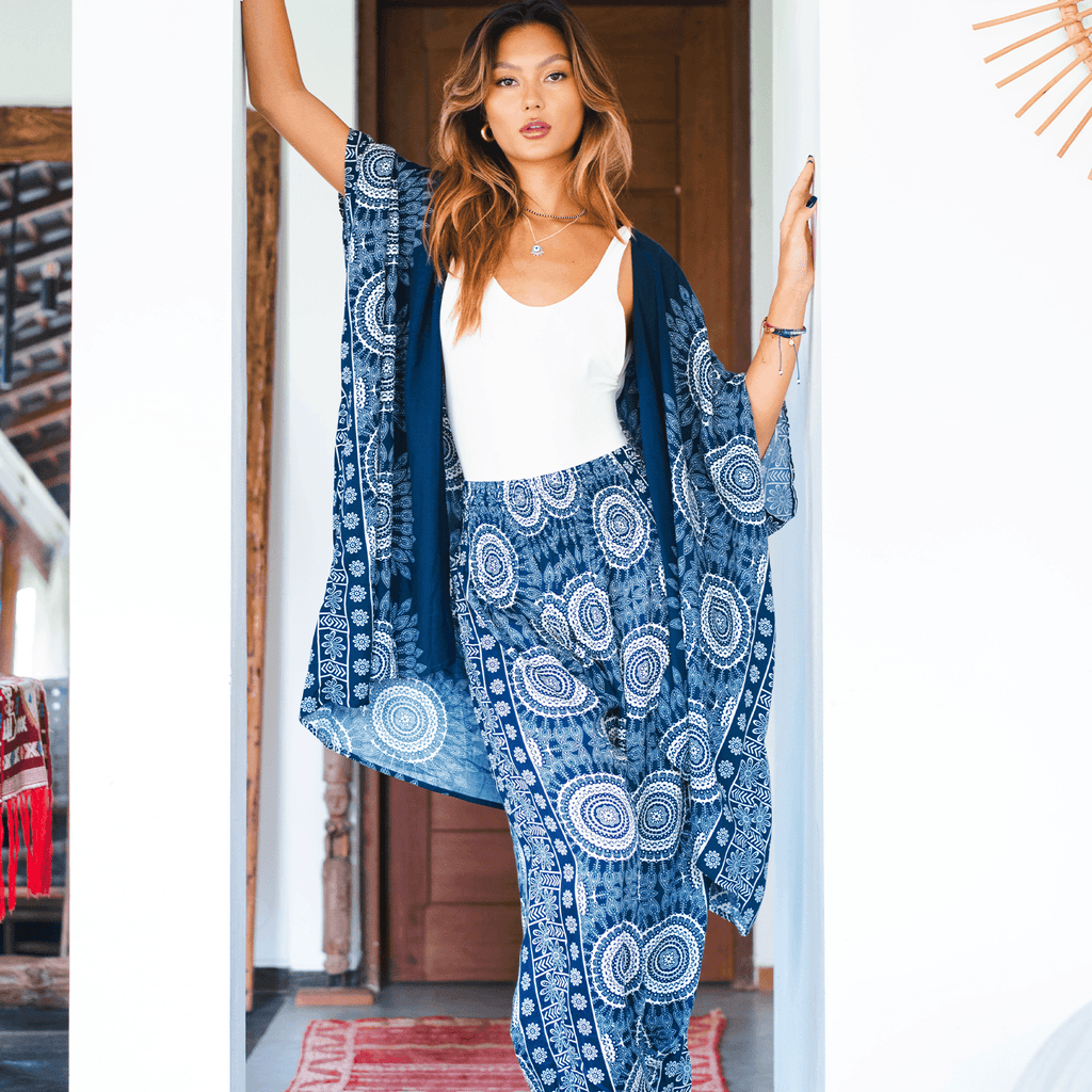 Embrace effortless style and ultimate comfort with the Como Kimono & Harem Pant Lounge Set. Crafted from our signature buttery-soft fabric, this set is designed to move with you, whether you're relaxing at home, practicing yoga, or exploring the world.