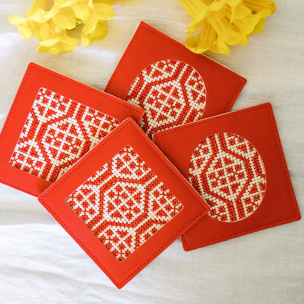 Our tatreez coasters are a beautiful way to share a piece of Palestinian culture in your home.