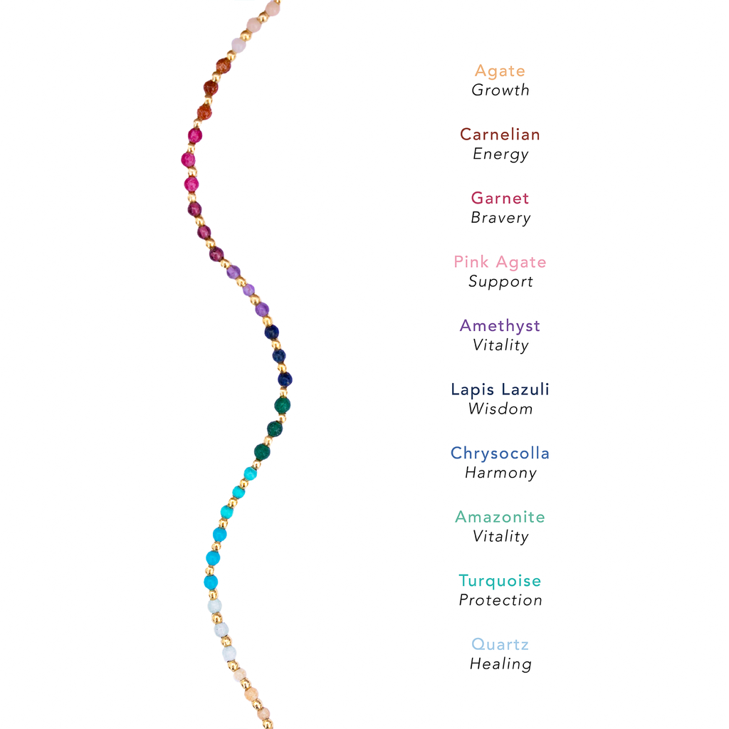 Perfect for gifting, each jewelry piece comes packaged with a description of its stones and their healing properties.