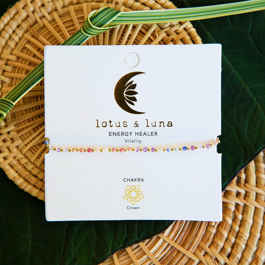 Offer your personal Energy Center a boost with the reviving powers of Amethyst, Sodalite, Pink Aventurine and Rhodolite.