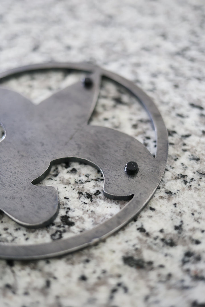 Your item is plasma cut using 16 gauge steel, approximately the thickness of a quarter coin, for a durable yet lightweight piece. The metal is left untreated to maintain its natural finish so it is best kept dry. Because of this, each item may vary slightly in coloration and markings, having it's own unique characteristics.