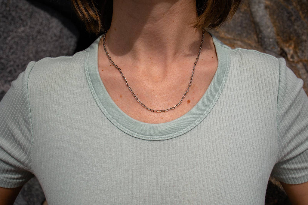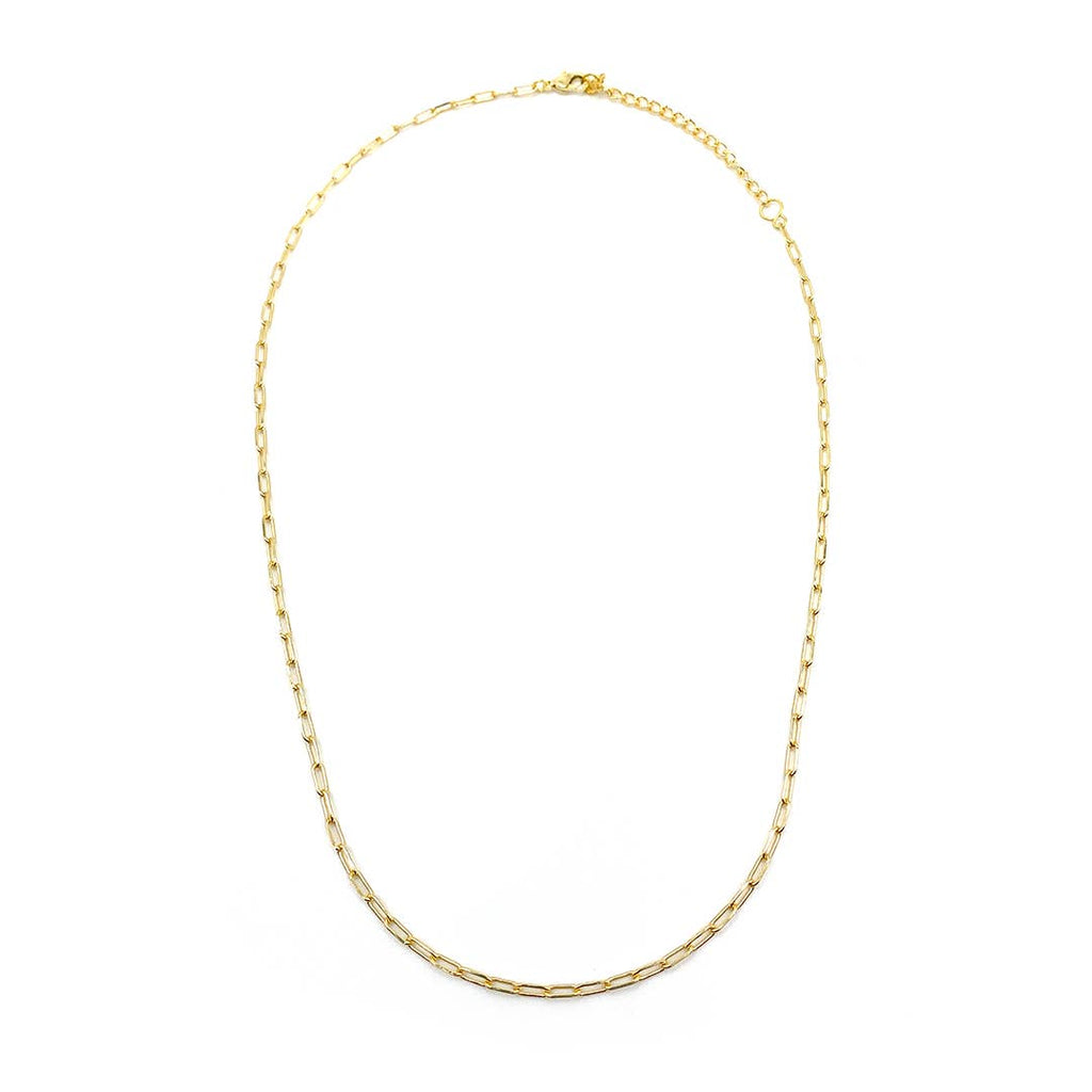 Our Paperclip handcrafted necklace features classic chain links in shiny gold-plated brass or shiny silver. We love it paired with the Swing Paperclip Necklace for a layered look.