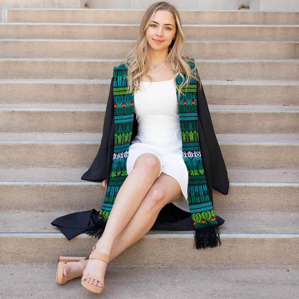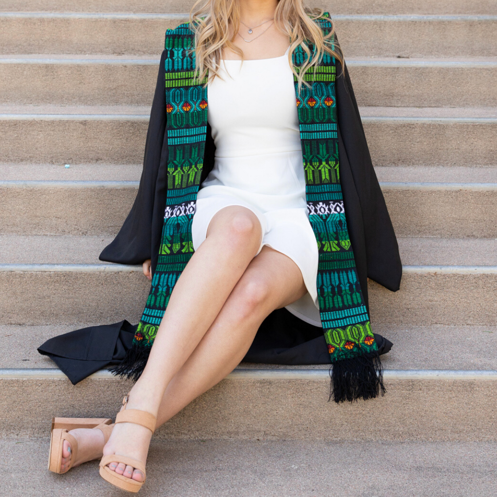 This beautiful Brocaded Clerical Stole (and Graduation Stole) in Green is finished with black fringe and gorgeous Guatemalan threading! In addition, the V-Neck lays flat on the back for a comfortable fit. As always, Handmade and Fair Trade!