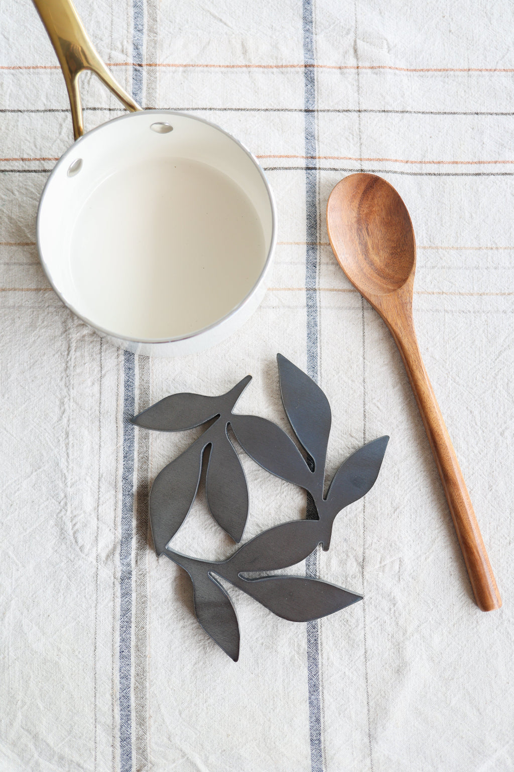 To prevent rust with regular kitchen use, keep the item dry. If it gets dirty, clean with a dry cloth or with soap and water and dry immediately. Kitchen oils actually prevent rust, so if your piece gets a little greasy with normal use, that is the perfect preventative.