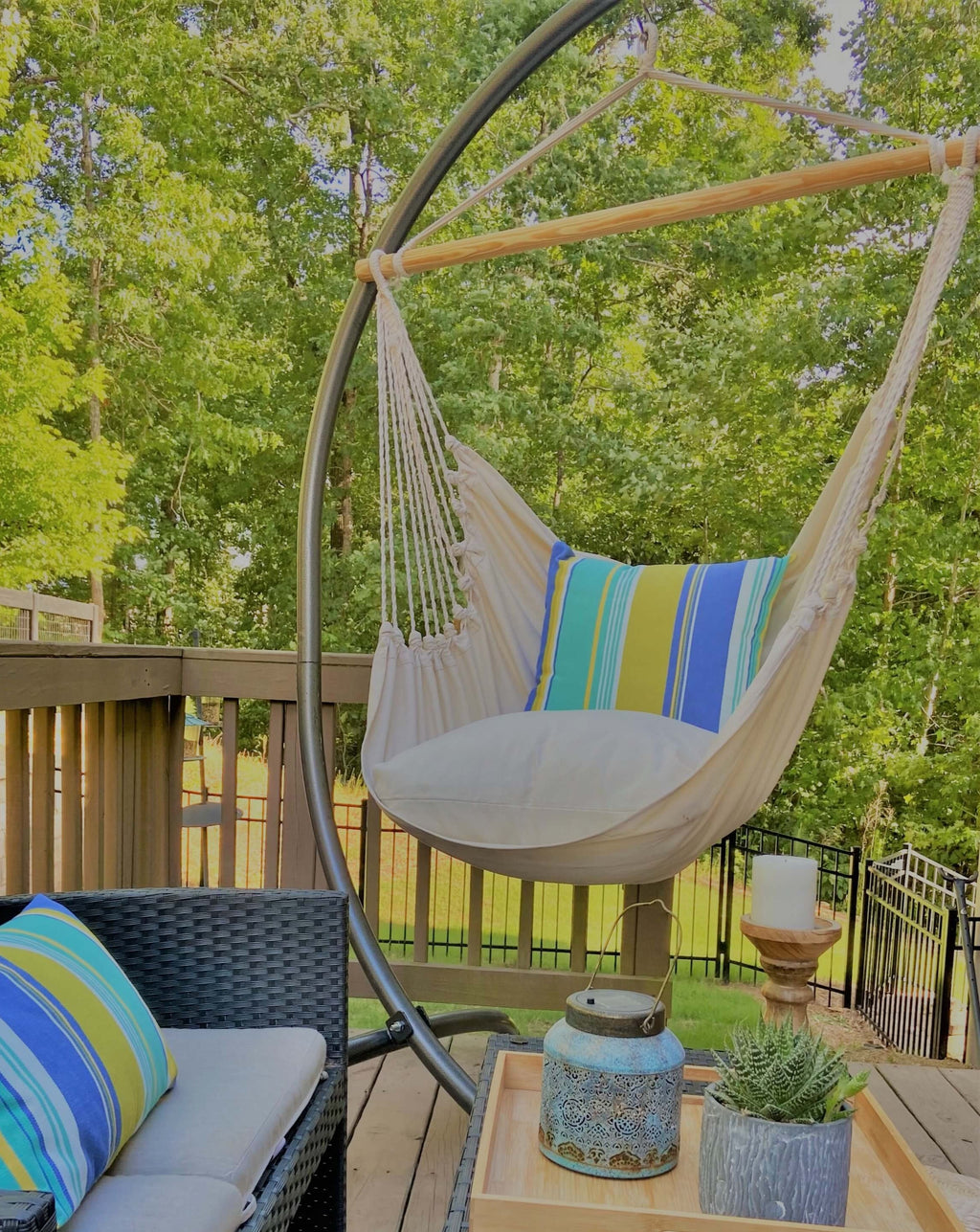 This colorful pillow with green and blue stripes looks especially good as an accent pillow with any hammock, sofa, chair, or bedroom decor. It goes well with any decor style and will create a fun contemporary look.