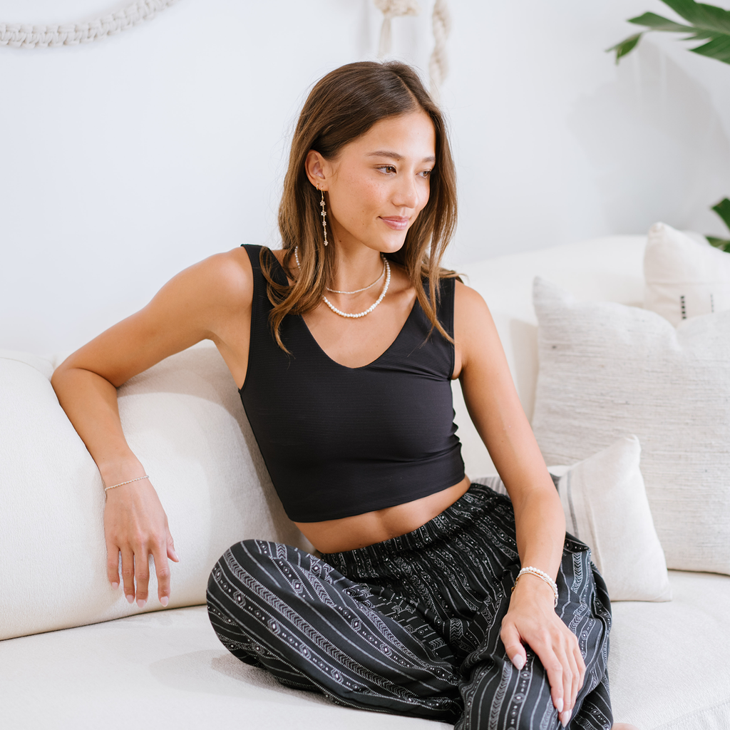 This luxurious material offers the perfect combination of comfort and style. Designed with a smooth lining, it ensures ultimate comfort against your skin. The tank top provides light support, making it ideal for lounging, light workouts, or casual wear. Our ribbed Balance Blend fabric adds texture and stretch for a comfortable fit, while the flattering V-neckline enhances your natural shape.