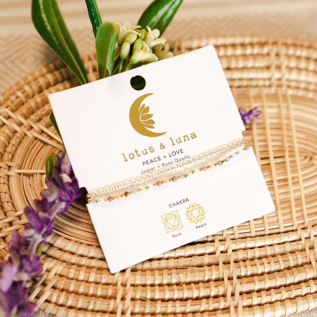 Perfect for gifting, each jewelry piece comes packaged with a description of its stones and their healing properties.