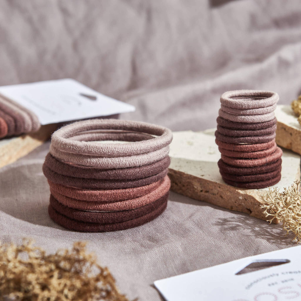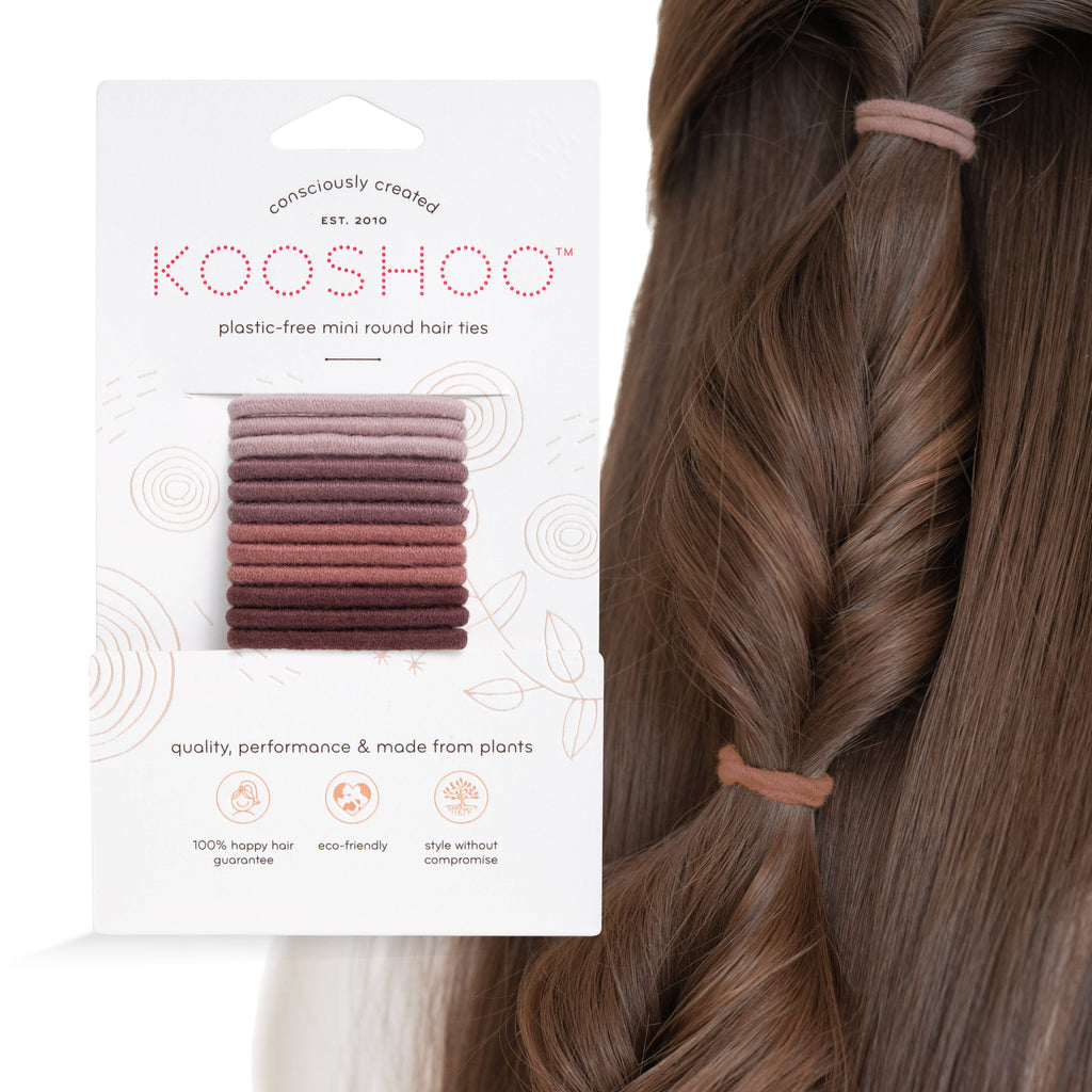 KOOSHOO Plastic-Free Mini Round Hair Ties - Zero-Waste, Cotton Hair Elastics for Braids, Intricate Styles, Small Ponytails, & Kids - Durable, No-Damage Hair Bands - Fair Trade & Ethically Made PLASTIC FREE HAIR TIES: Our Minis are perfectly sized for braids, small ponytails, intricate styles, & even kids! Made of 2 ingredients: certified organic cotton & 100% sustainably sourced, fairtrade natural tree rubber. Look good & feel good! BUILT TO LAST & BIODEGRADABLE: Did you know every hair elastic you’ve ever owned still exists today? Here’s a product with unmatched strength & stretchability to stand the test of time, yet 100% biodegradable. Lasts in your hair, but not in a landfill! GREAT FOR YOUR HAIR: Completely creaseless & won’t pull, slip, or cause any discomfort or damage to your hair! SOCIALLY & ENVIRONMENTALLY CONSCIOUS: 100% plastic-free & ethically made from sustainably sourced, all natural, plant-based materials and dyed using certified non-toxic dyes. Recyclable packaging