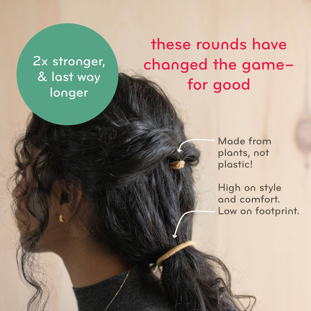 KOOSHOO Plastic-Free Mondo Hair Ties - Organic Cotton Round Hair Elastics - Machine Washable, Durable, No-Damage Hair Bands Made from Plants - Zero-Waste, Fair Trade, Ethical Styling Accessories HIGH QUALITY PLASTIC-FREE HAIR TIES: Built to last, made from only certified organic cotton and 100% sustainably sourced, fairtrade natural tree rubber. Designed to be high on style & comfort, low on footprint. SUPERIOR STRENGTH & STRETCH: Lab-proven to be 2x stronger than the leading, plastic-laden brand. Purchase with peace of mind knowing our hair ties will last in your hair, but not in a landfill! GREAT FOR YOUR HAIR: Durable, creaseless & won’t pull, slip, or damage your hair! Available in a variety of fresh colors, look great when worn as a bracelet, & have a smooth rounded edge to match your fave styles. SOCIALLY & ENVIRONMENTALLY CONSCIOUS: 100% plastic-free & ethically made from sustainably sourced, all natural, plant-based materials, and dyed using certified non-toxic dyes.