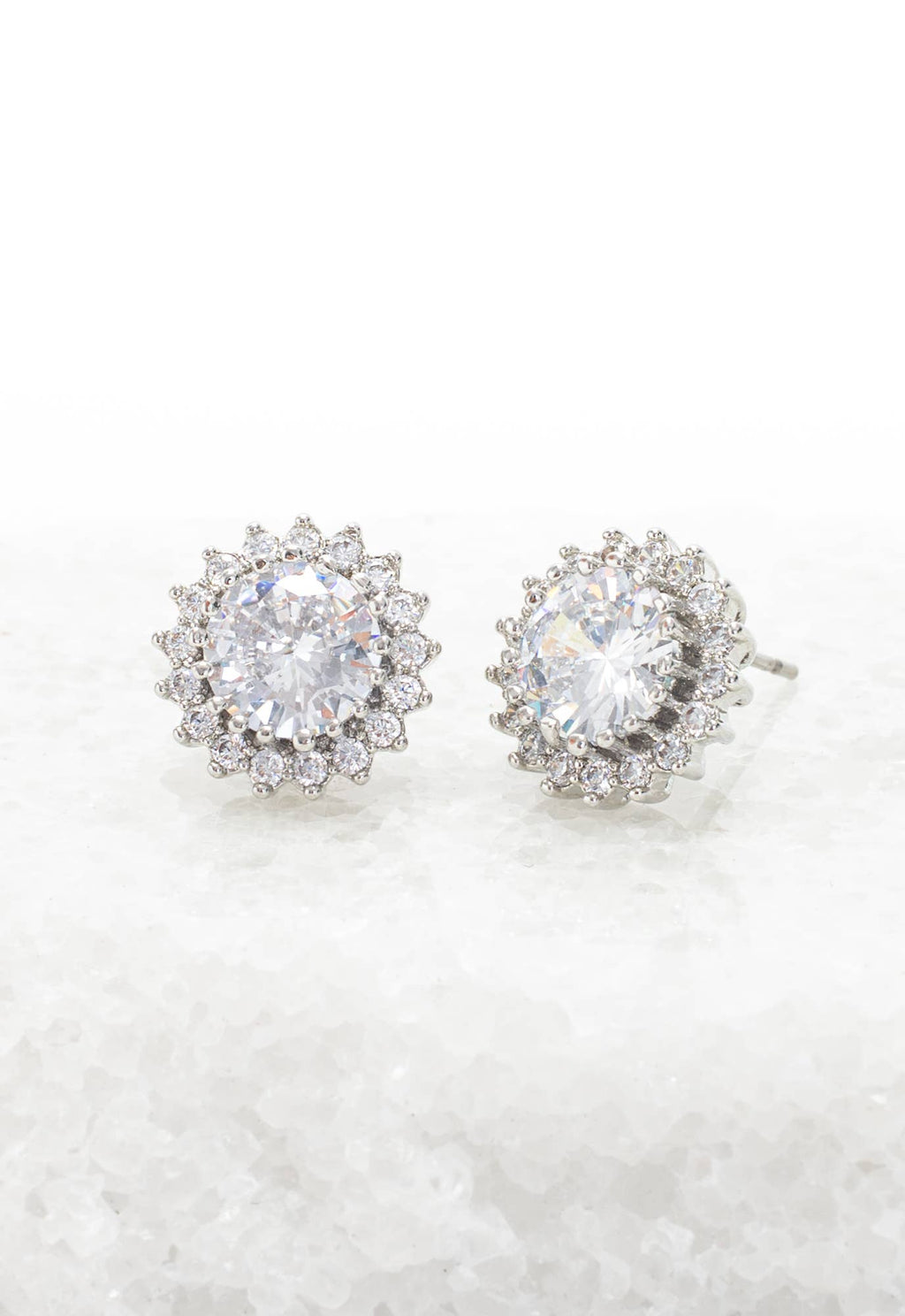 The Radiant Shine Platinum Zircon Studs epitomize the perfect balance of elegance and sophistication. The stunning studs feature a captivating zircon gemstone stone set at the center, encircled by a dazzling array of tiny zircon stones in a platinum setting. The intricate design captures the essence of a radiant halo, illuminating your beauty with a radiant glow. Whether you're a bride on your special day, a bridesmaid adding a touch of elegance, or attending a joyous occasion, these studs are the picture of timeless shine. May the Radiant Shine Studs reflect your inner radiance and the inspirational strength that emanates from within. Box size and color may vary. Materials: Platinum plated brass with zircon earrings. Hypoallergenic; lead and cadmium free with nickel content less than 100 ppm. Size: 0.45 inches