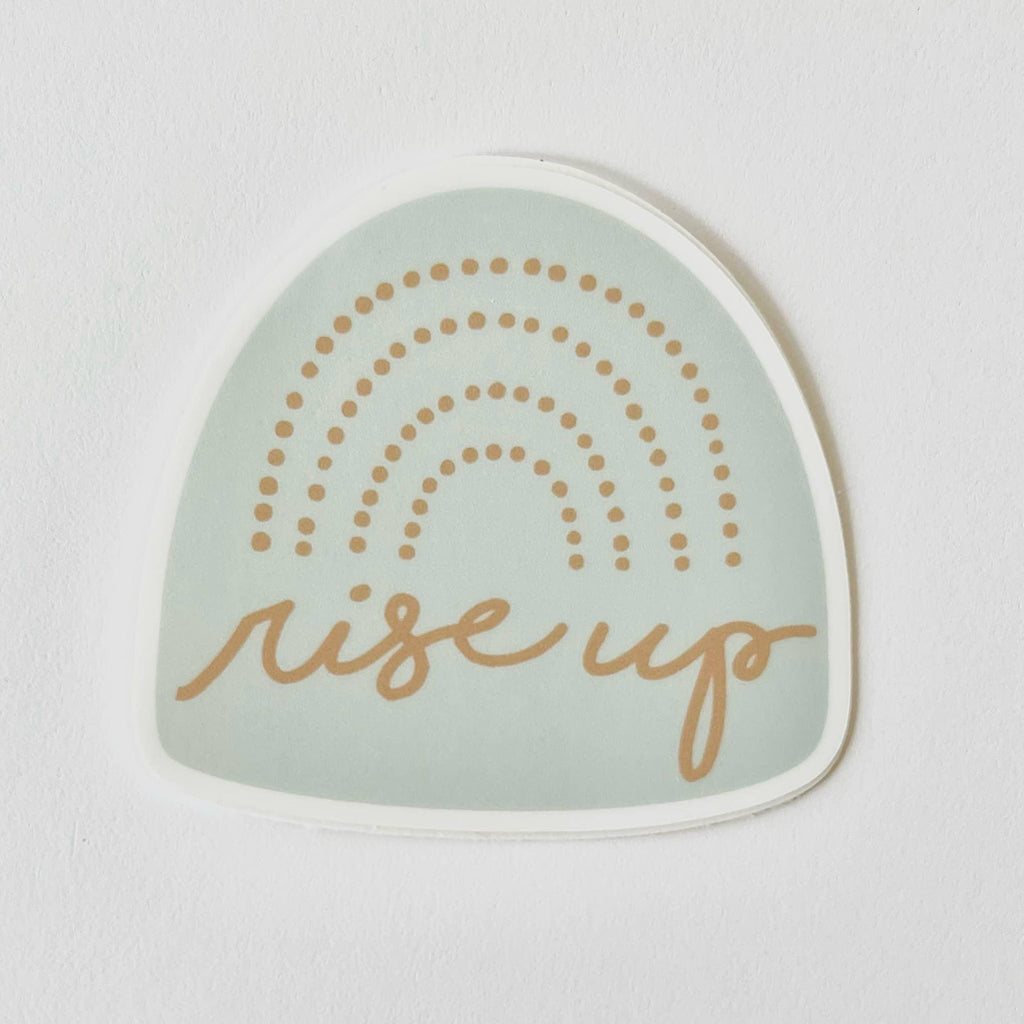 3" matte vinyl sticker ethically printed in the USA Durable on laptops, water bottles, journals, etc. Copy: "Rise Up"
