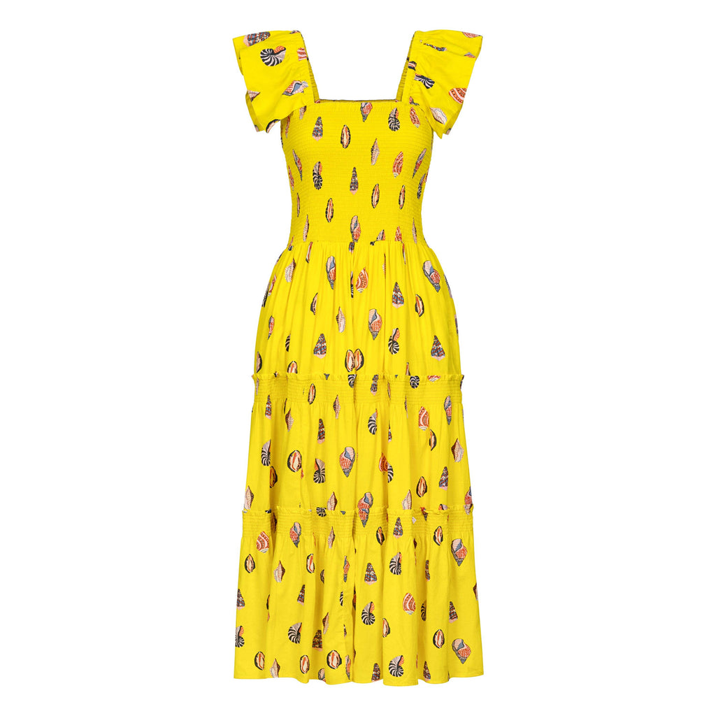 The Rio Dress just got sunnier! Back in a bright yellow and a colorful seashell print, this best seller has a cinched bodice and charming flutter sleeves, making it both flattering and fun. Perfect for any occasion, the Rio Dress combines classic style with a playful twist.