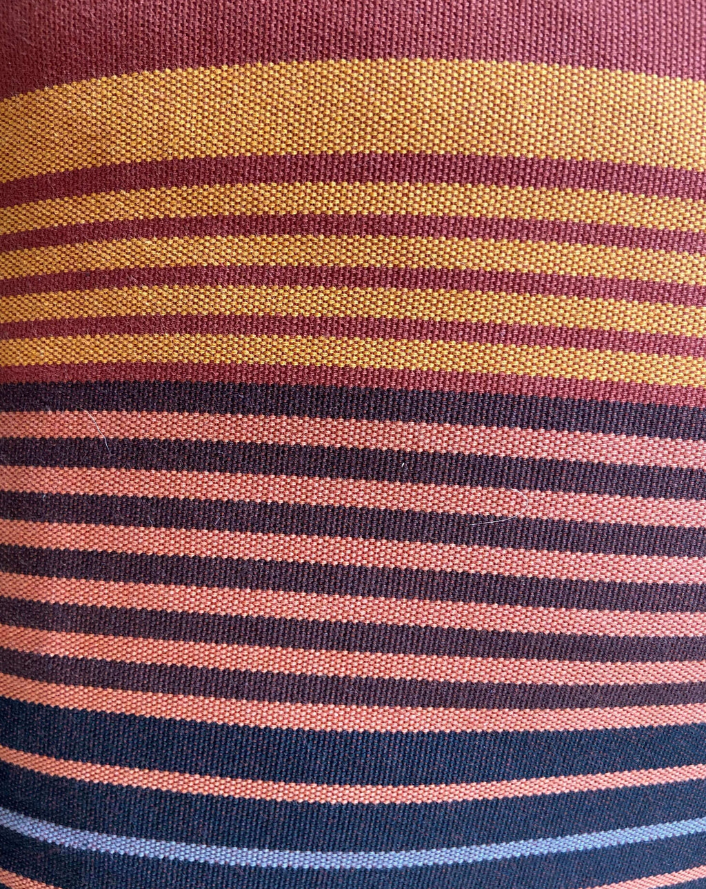 Layer your favorite chair, bed, hammock, or sofa with this striped sunset pillow. It provides added comfort and a touch of whimsy to space. This pillow can be used both indoors or in a covered outdoor space.